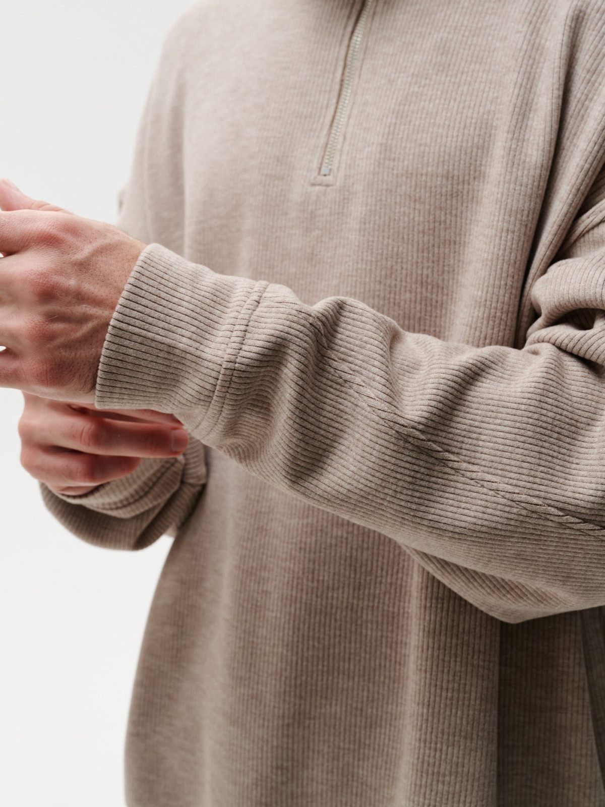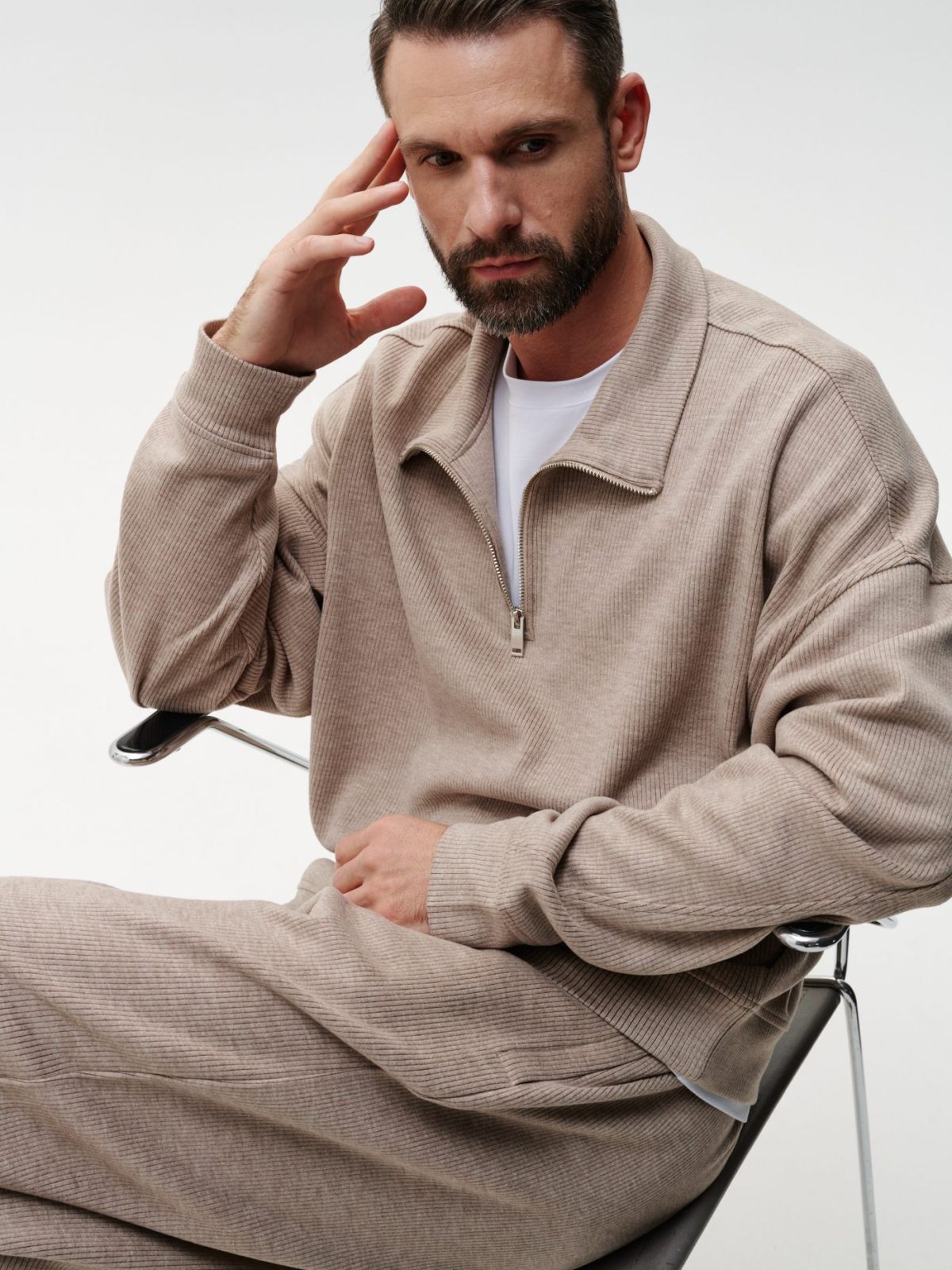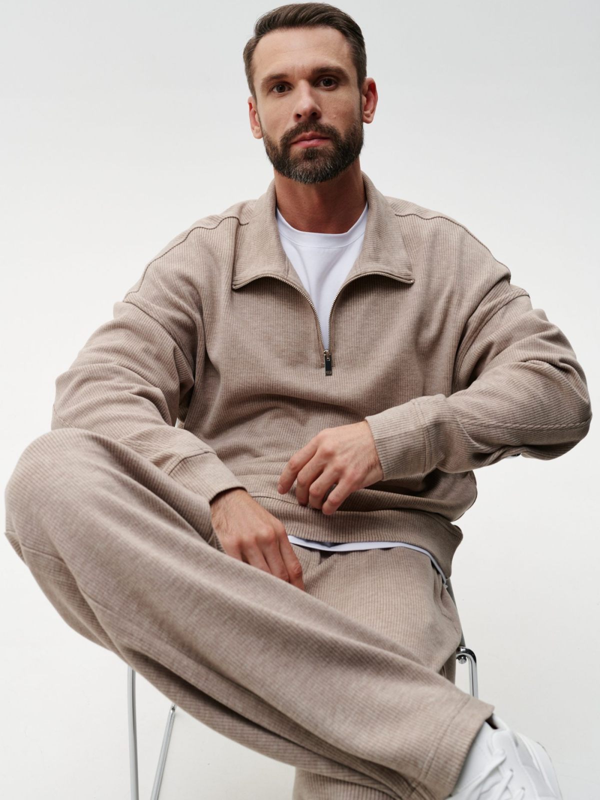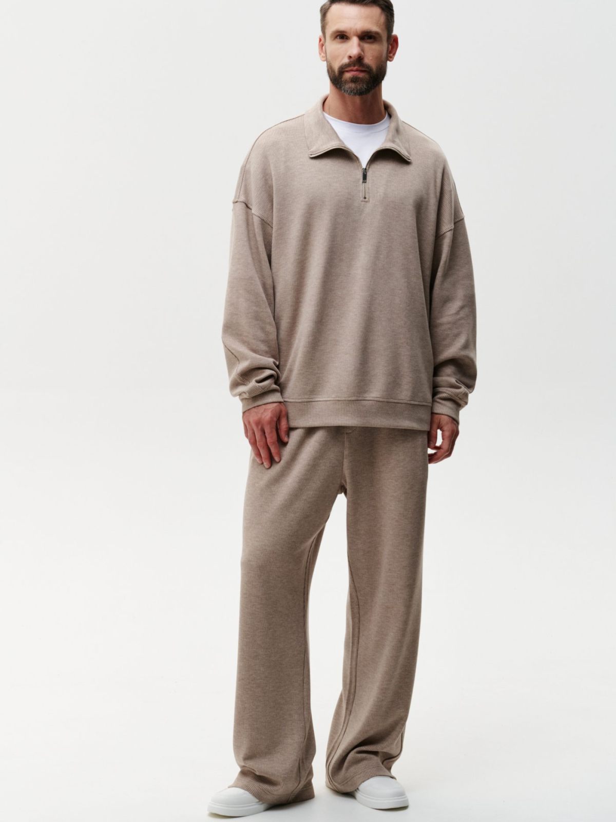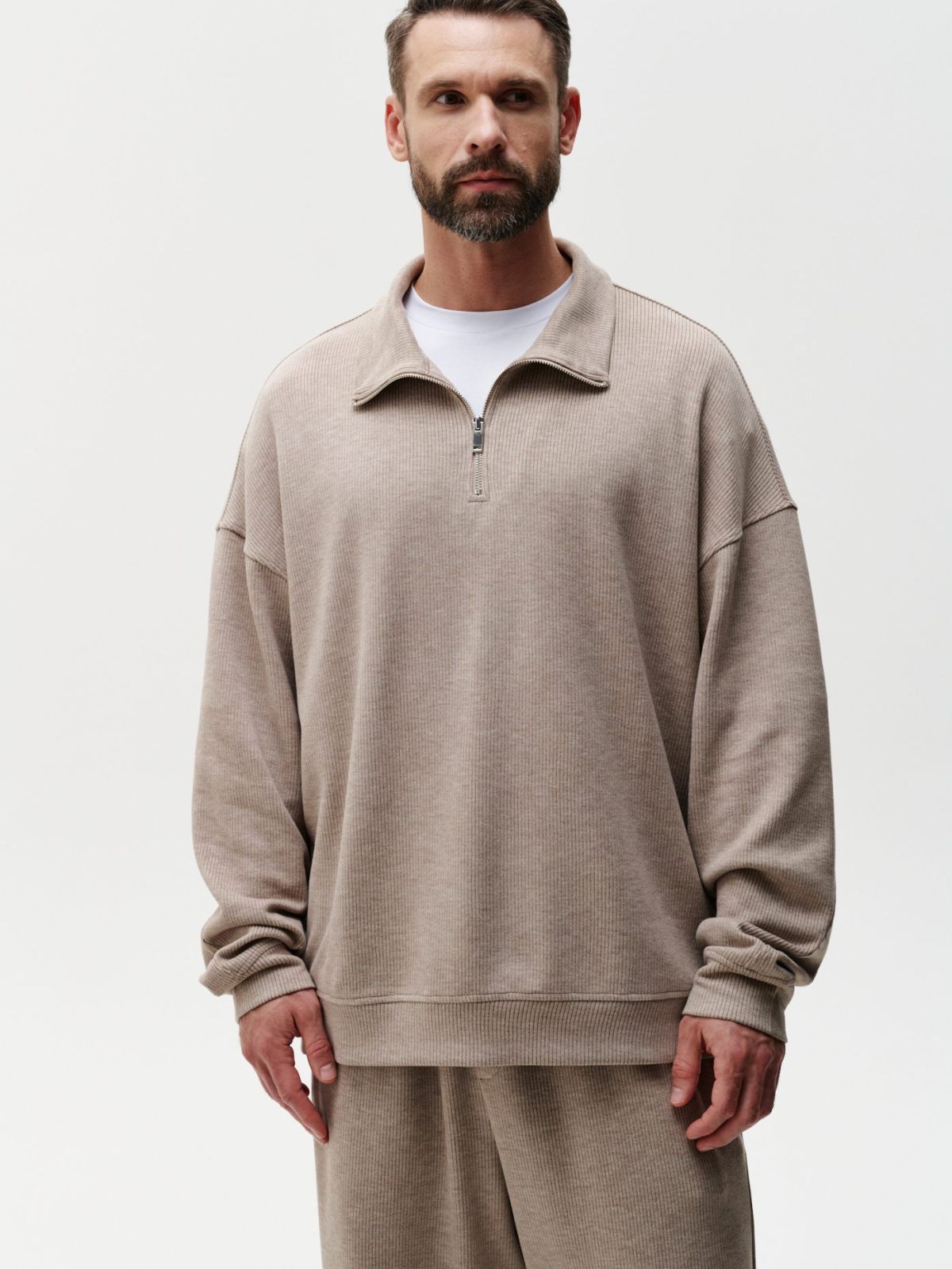 Джемпер "Миша" свободного кроя с воротником-стойкой на молнии из коллекции Softwear выполнен из материала, в составе которого, преимущественно, вискоза и нейлон, за счет чего материал гладкий и приятный на ощупь, слегка тянется, но при этом выглядит фактурно. Расслабленный силуэт, спущенное плечо, дизайнерские линии по длине рукава, классический цвет полностью отражают эстетику коллекции Softwear. На спине сзади расположена лаконичная тональная вышивка с логотипом бренда. К джемперу в ассортименте представлены брюки "Эхо" 2M4SW84W. Невероятно комфортный, мягкий и стильный костюм на каждый день. Важно: материал имеет низкую пиллингуемость, но частое соприкосновение с аксессуарами может привести к образованию пилли.