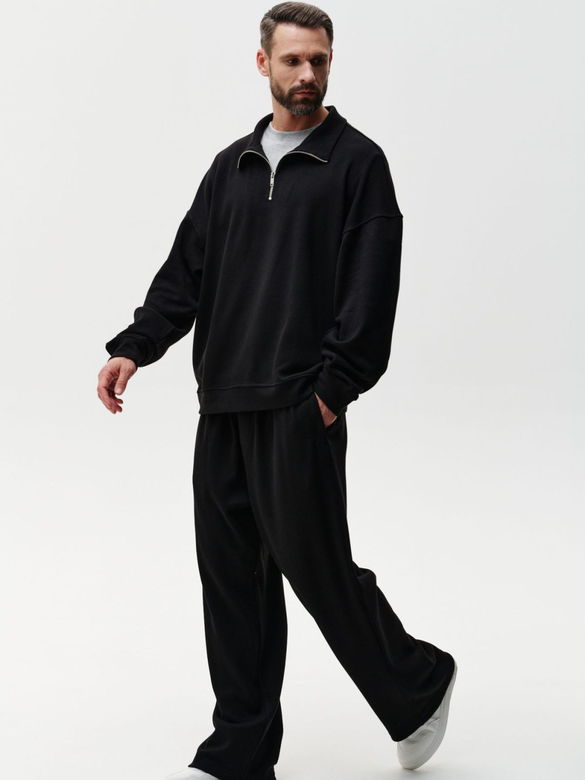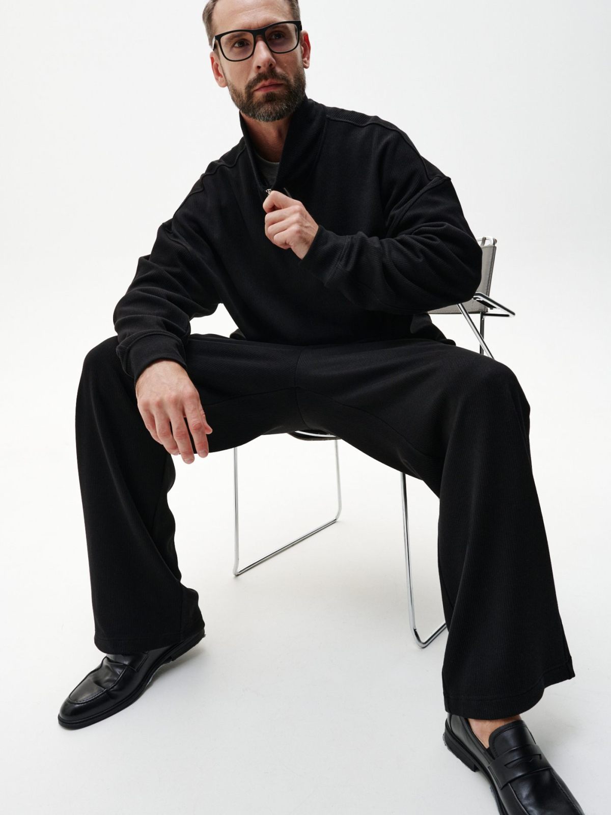 Широкие прямые брюки "Эхо" из коллекции Softwear выполнены из материала, в составе которого, преимущественно, вискоза и нейлон, за счет чего материал гладкий и приятный на ощупь, слегка тянется, но при этом выглядит фактурно. Комфортная резинка на поясе, расслабленный силуэт, классический цвет полностью отражают эстетику коллекции Softwear. Гульфик на брюках декоративный. Брюки имеют два боковых кармана на молнии, внутренний шнурок для регулировки посадки. К брюкам в ассортименте представлен джемпер "Миша" 2M4SW32E1. Невероятно комфортный, мягкий и стильный костюм на каждый день. Важно: материал имеет низкую пиллингуемость, но частое соприкосновение с аксессуарами может привести к образованию пилли.
