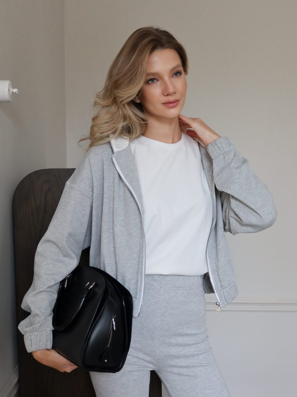 Укороченный худи на молнии свободного кроя выполнен из материала, в составе которого 67% полиэстера 25% вискозы и 8% эластана, подкладка капюшона сделана из материала с эффектом peach, за счет чего худи невероятного мягкий и комфортный. Внизу худи собран на резинку шириной 5 см, что обеспечивает отличную посадку. На капюшоне расположен лаконичный жаккардовый флажок с логотипом бренда. Худи представлен в двух классических цветах: серый и бежевый меланж. Комплектом к худи в ассортименте представлены брюки W5HOM84. Отличный выбор для комфортного образа в спортивном стиле на каждый день.