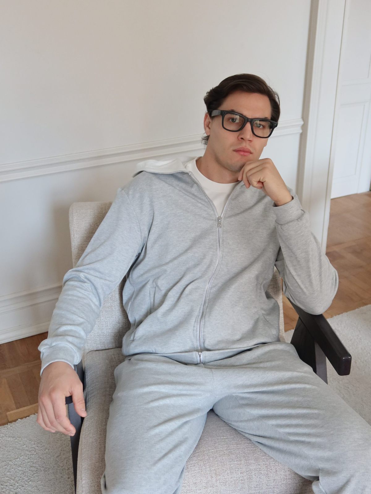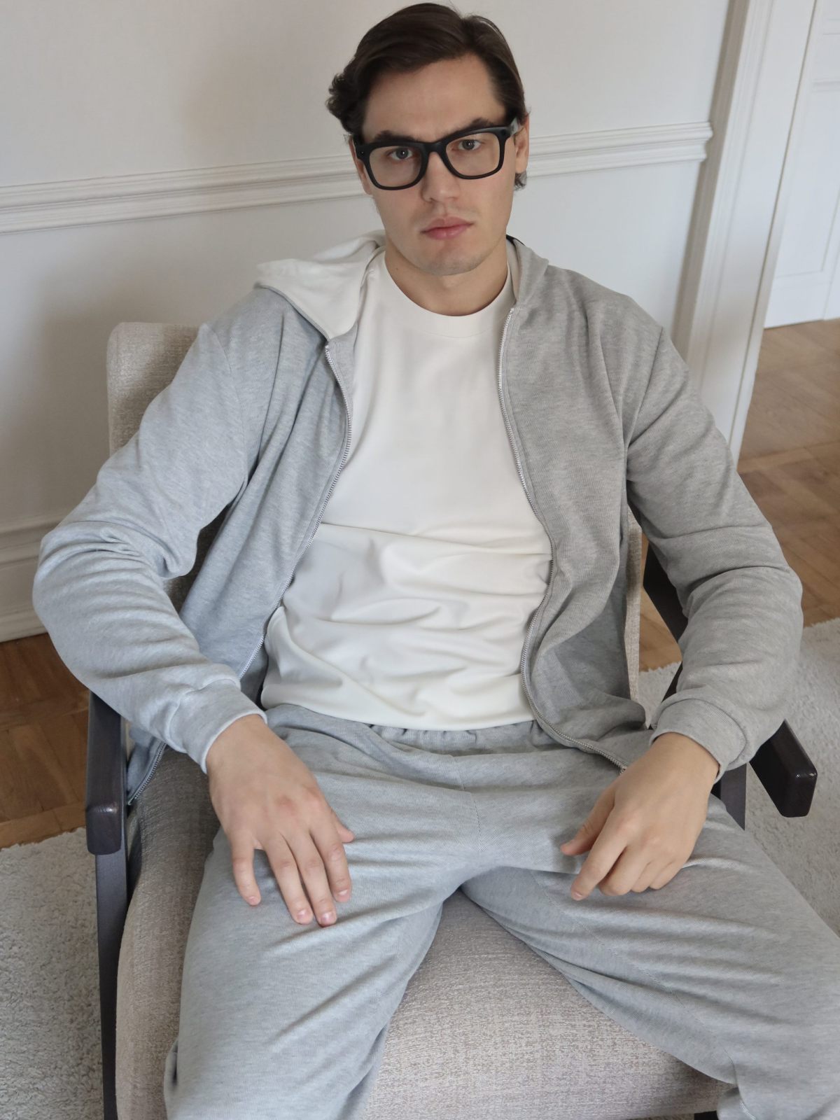 На модели размер XL, рост 188 см. Обхват груди 93 см, талии 73 см, бедер 93 см