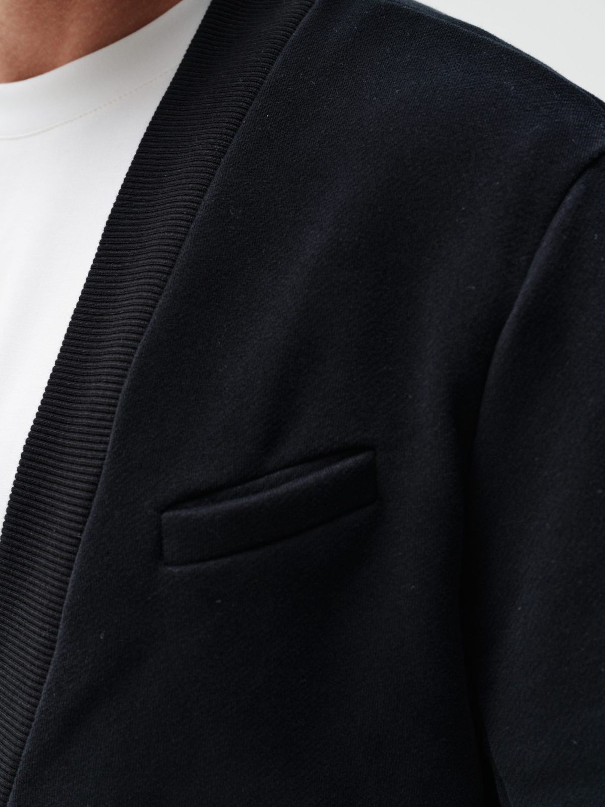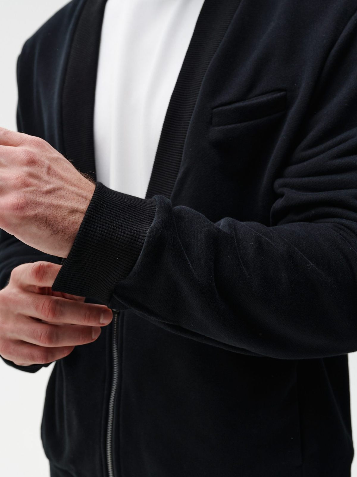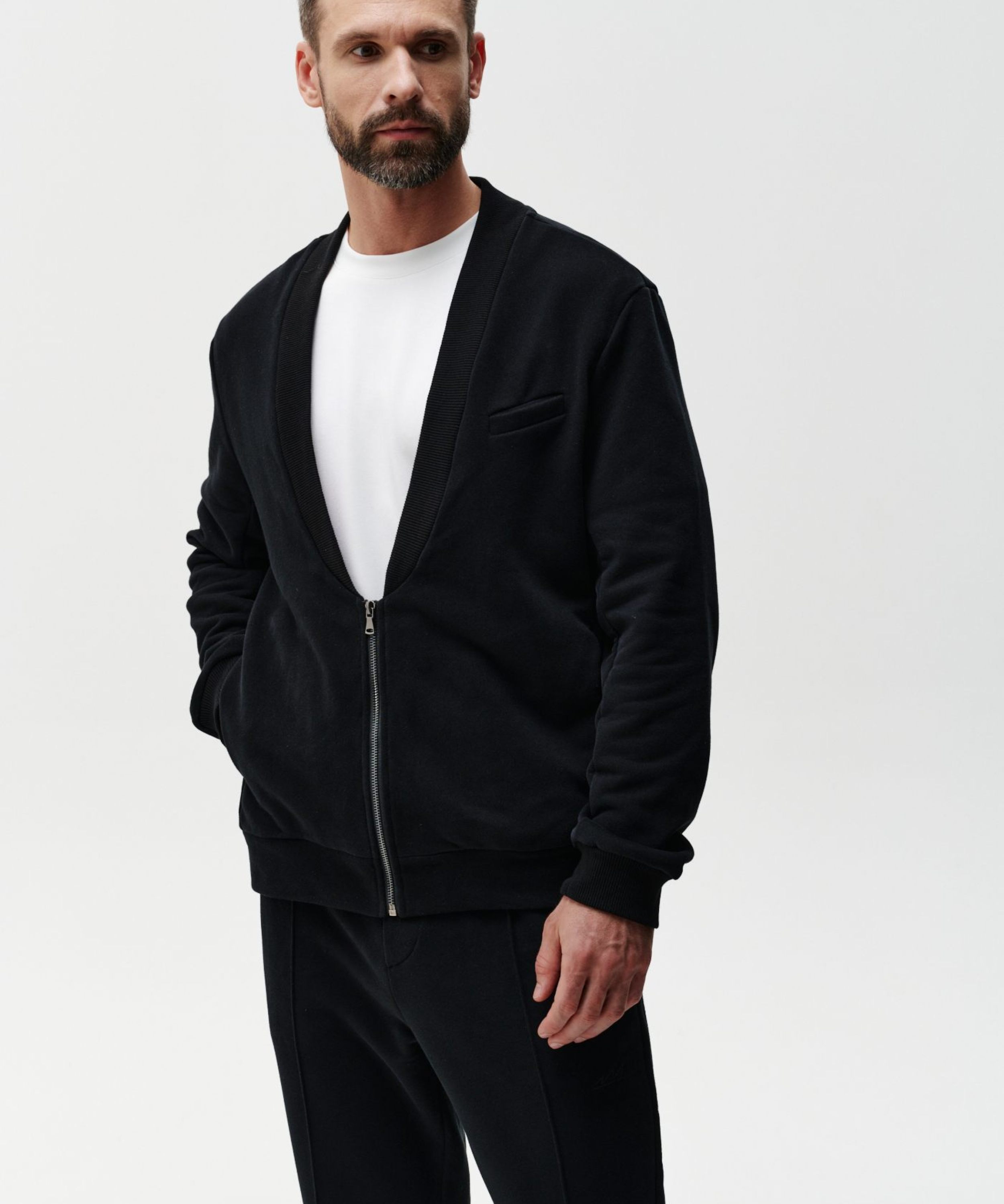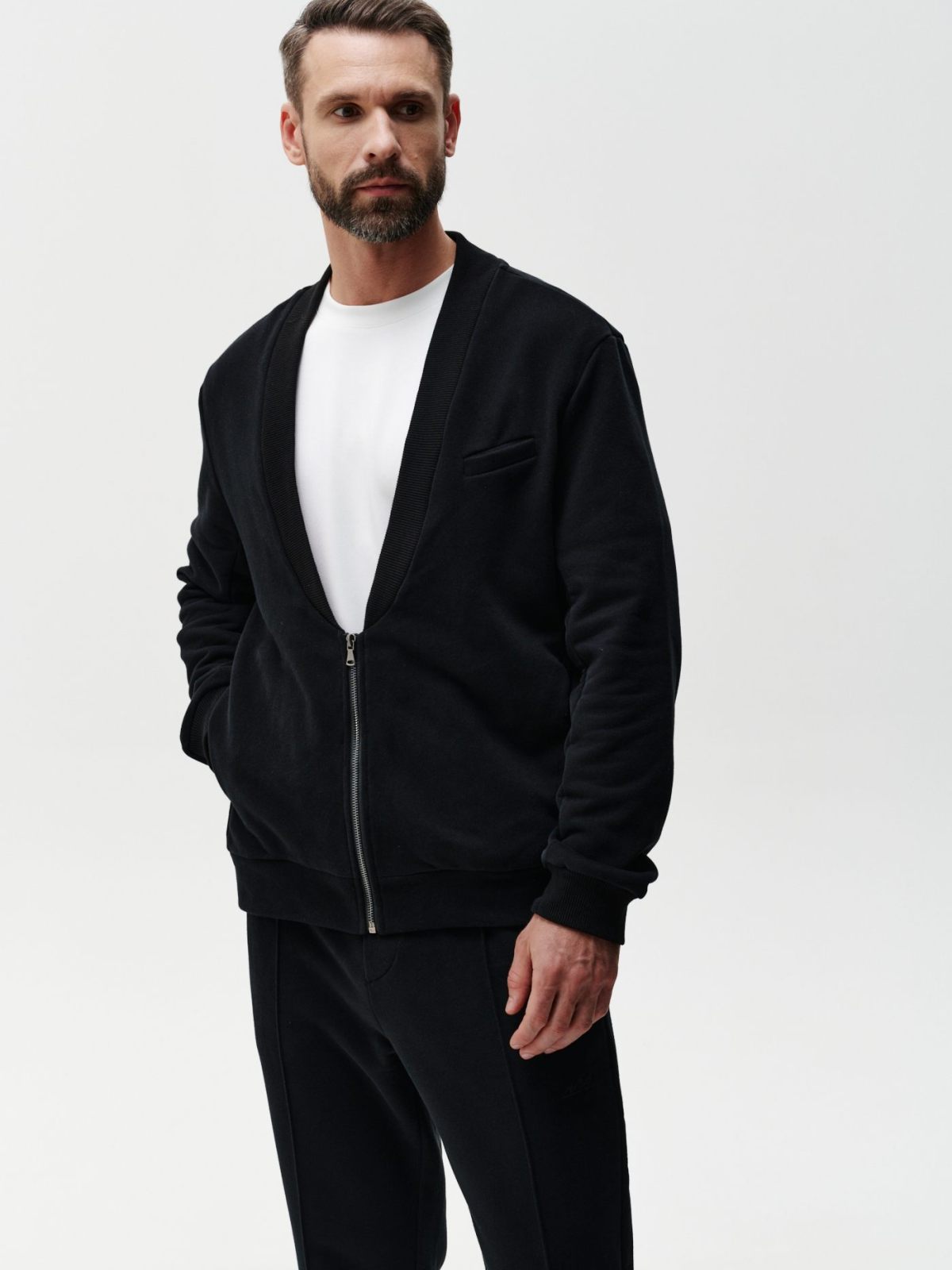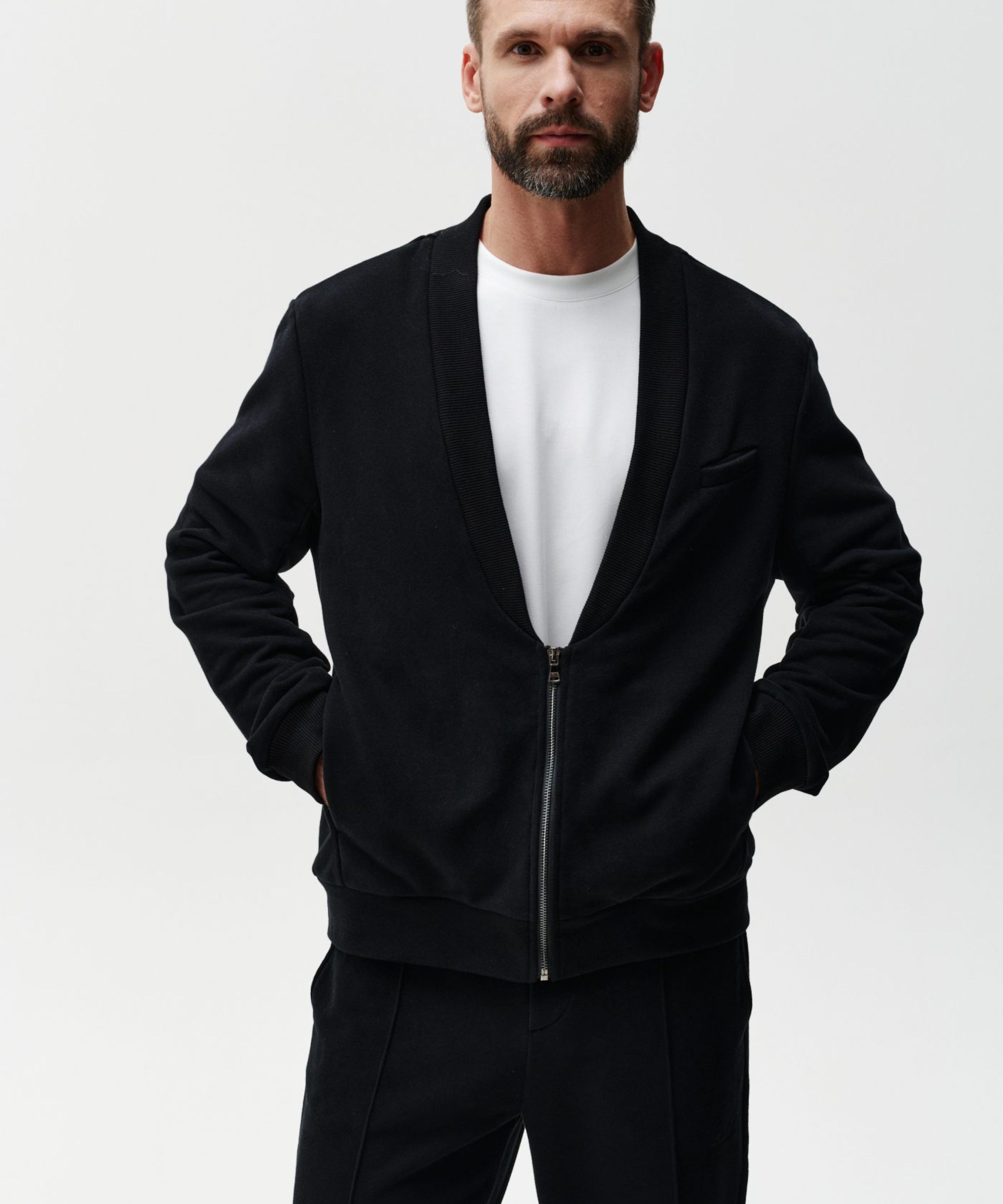 Мужской джемпер "Смокинг" на молнии из лимитированного дропа Villains Academy выполнен из материала с эффектом peach, в составе которого 90% хлопка 10% полиэстера, что обеспечивает отличную посадку и долговечность изделия. В этой модели мы совместили классическую спортивную эстетику с костюмной группой, тем самым играя со стилистикой деконструкции. Именно это делает модель такой уникальной. Декоративная листочка с левой стороны и мягкий материал делают прямую отсылку к классическому костюму. Джемпер имеет боковые карманы в шве и стильную контрастную вышивку с логотипом бренда в верхней части спины.
