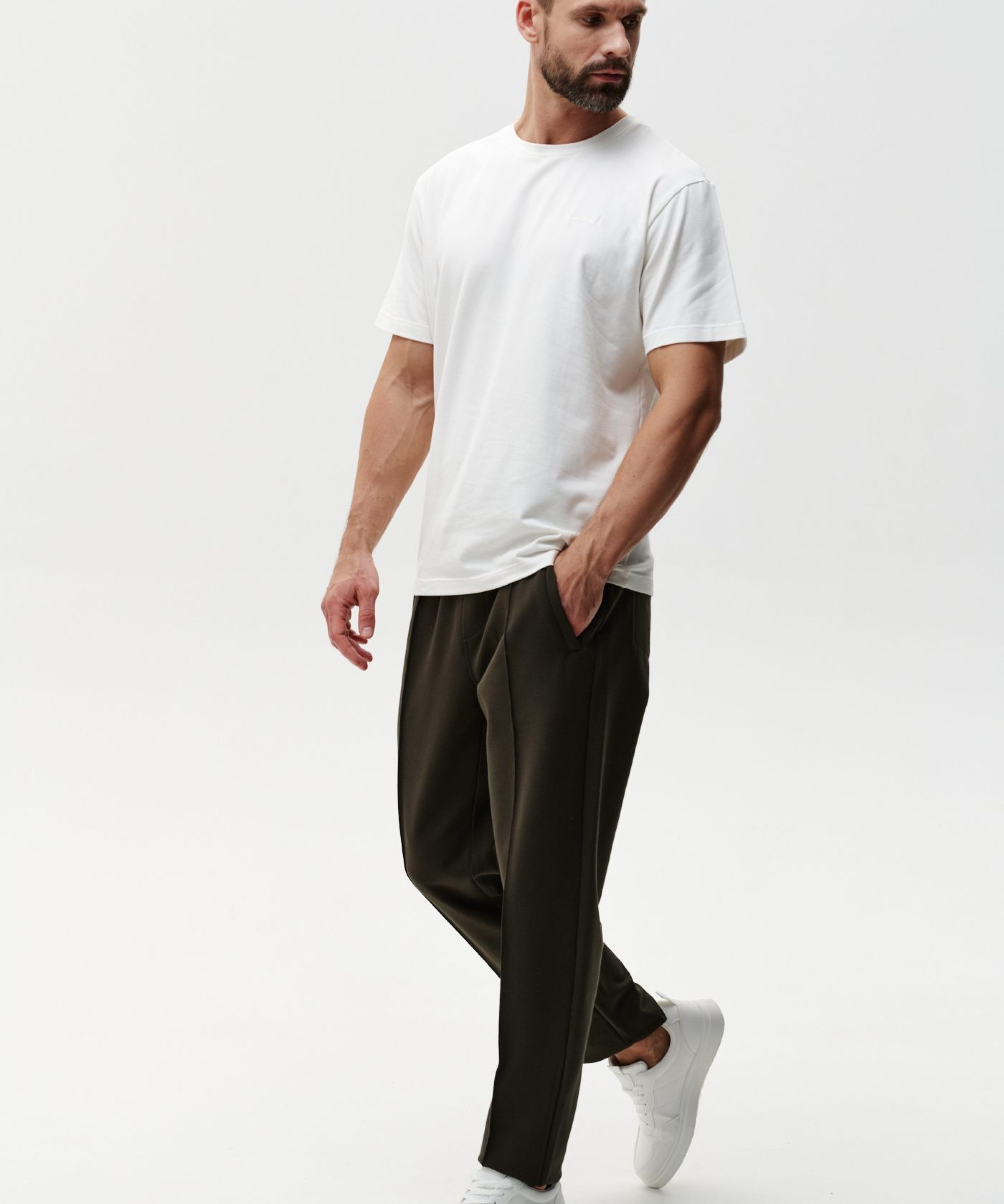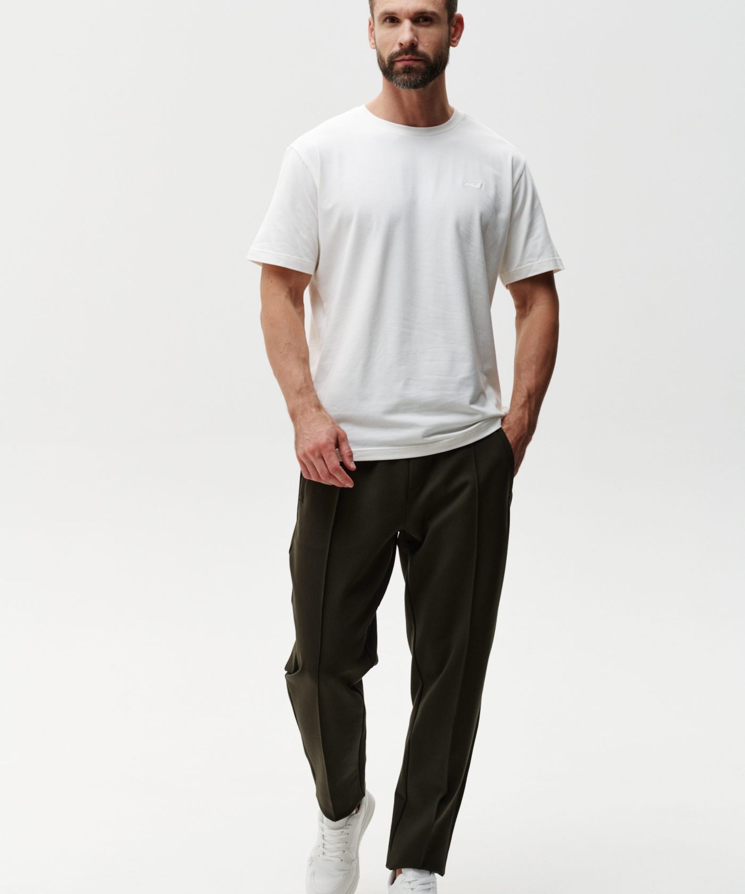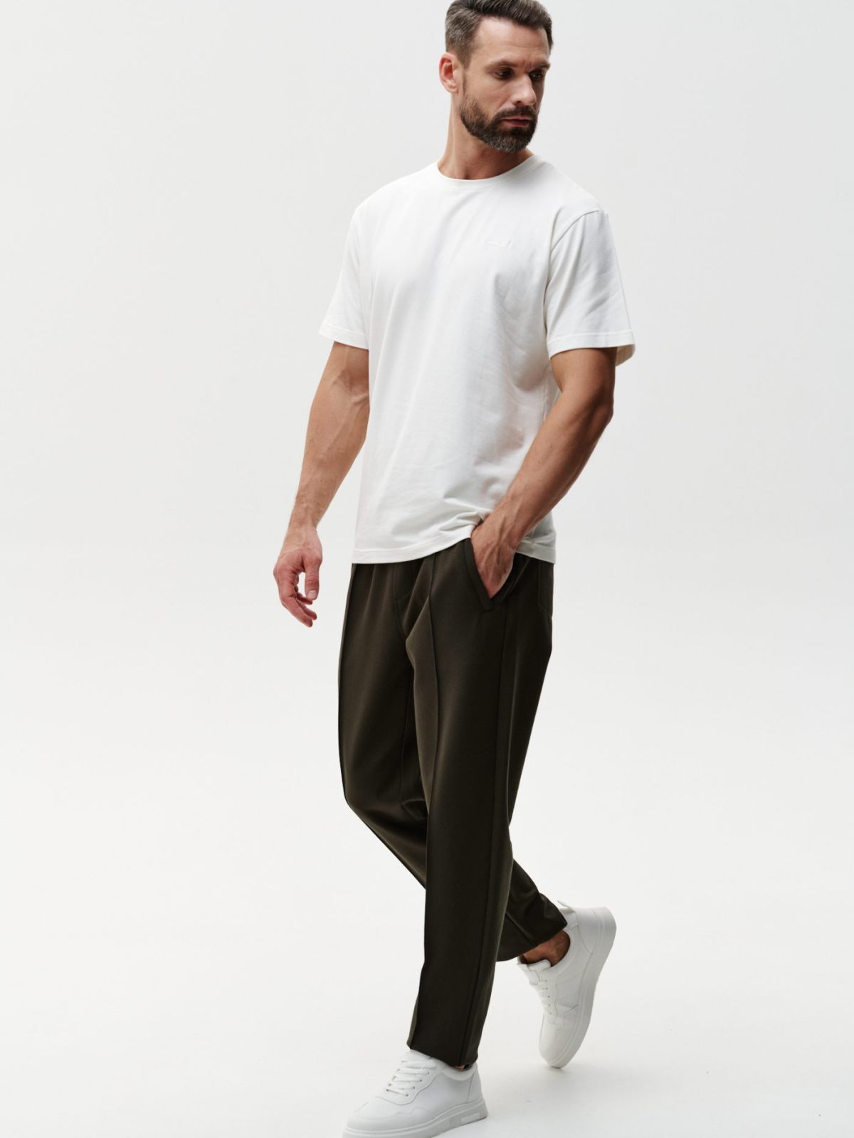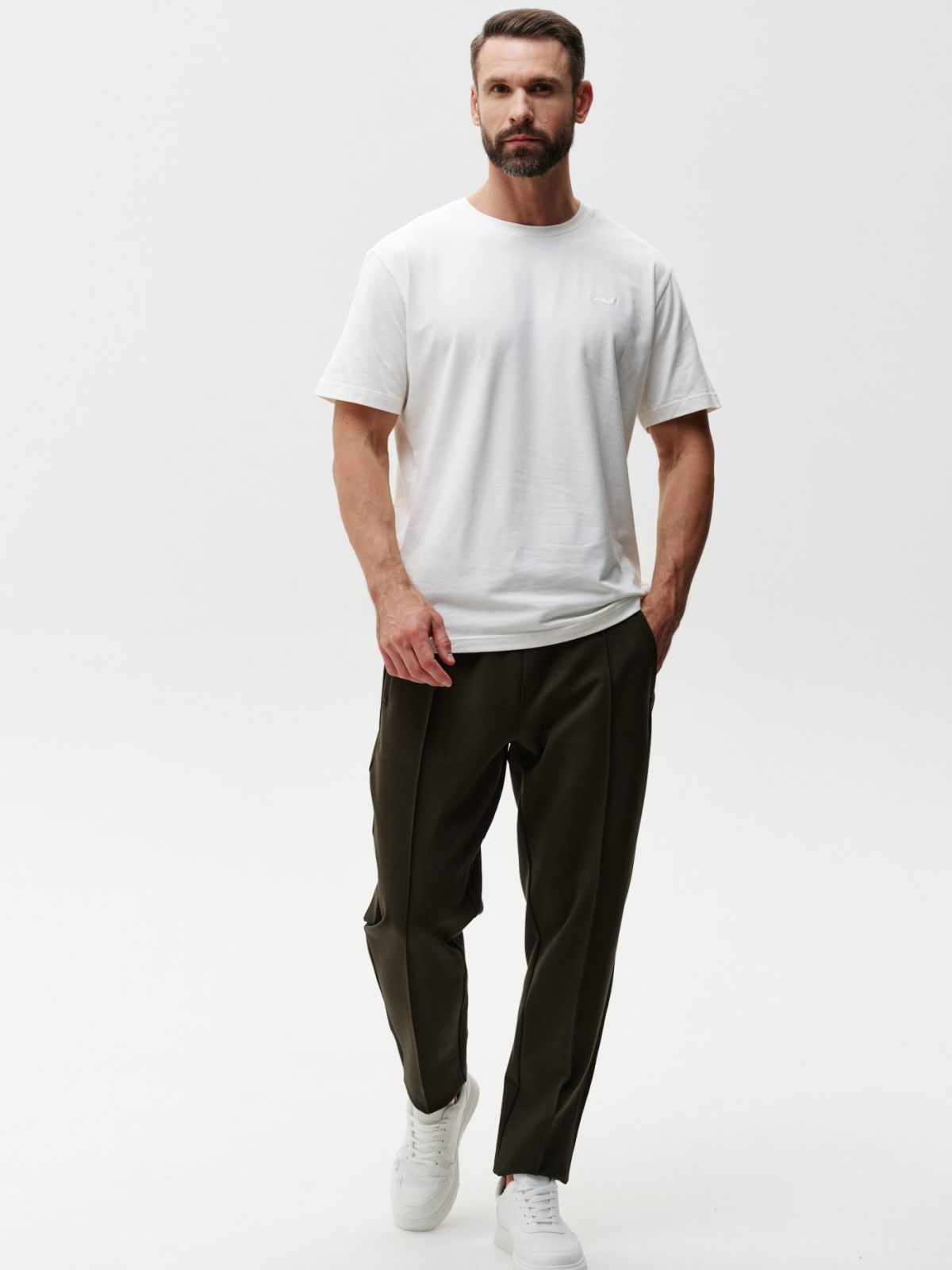Мужская футболка классического прямого кроя выполнена из материала, в состав которого входит 92% хлопка и 8% эластана, за счет чего футболка более эластичная и лучше держит форму. На груди расположена тональная вышивка-логотип. Модель представлена в классических цветах: серый меланж, темно-синий, экрю, ваниль и черный. Футболка легко сочетается как со спортивной так и с повседневной одеждой, и является незаменимой в вашем базовом гардеробе.
