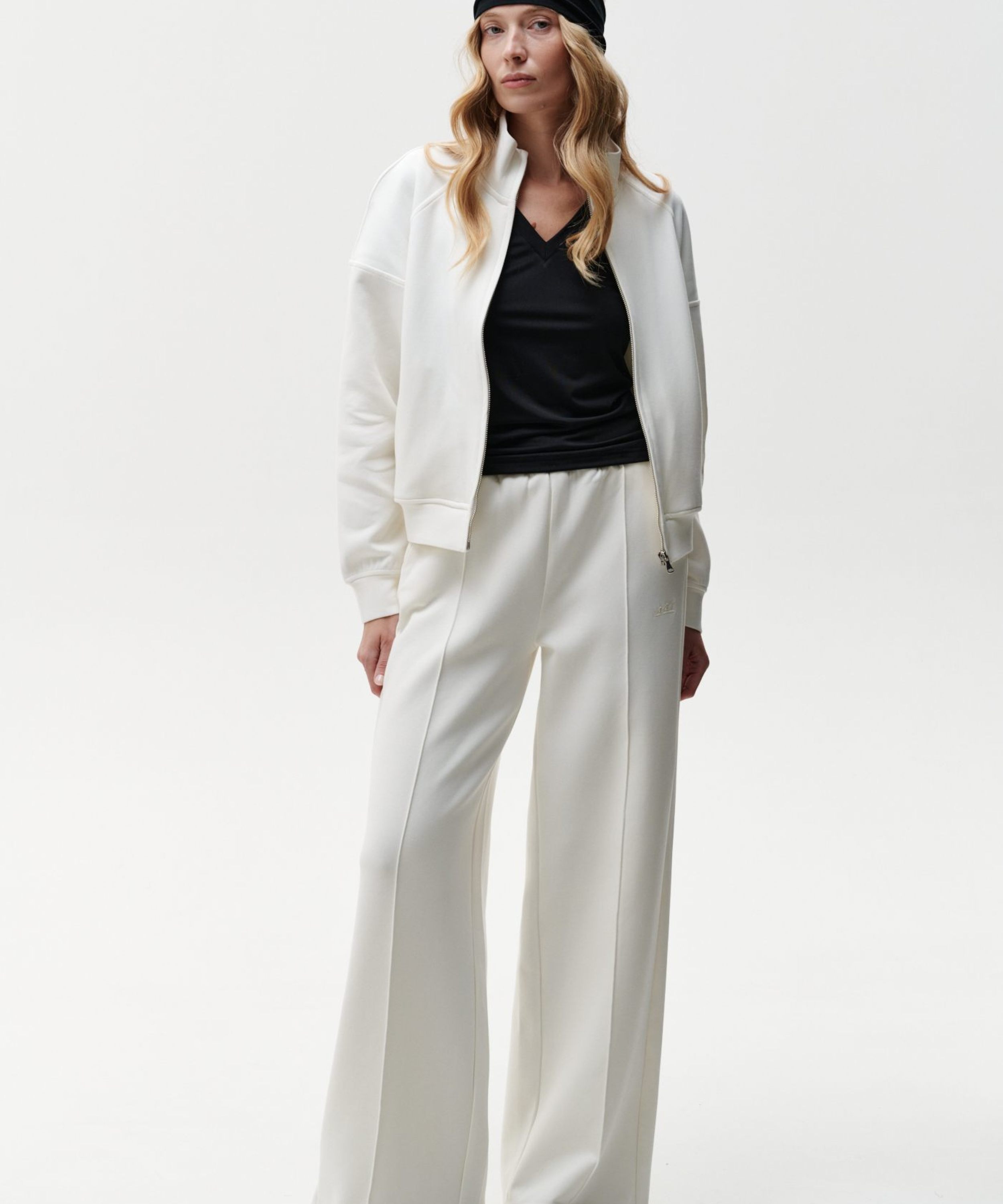 Женские широкие брюки со стрелками в классическом стиле из коллекции Pure выполнены из материала скуба, за счет чего брюки отлично держат форму и долговечные в носке. Благодаря большой доле хлопка в изделии, данная скуба является гипоаллергенной. Посадка брюк - средняя. На левой ноге расположена лаконичная тональная вышивка с логотипом бренда. Брюки имеют внутренний шнурок в поясе для регулировки посадки. В комплекте к брюкам в ассортименте представлен джемпер W4PR31-ECR. Костюм отлично подойдет не только для повседневных образов, но и для офиса, отлично сочетаются с классической белой рубашкой.