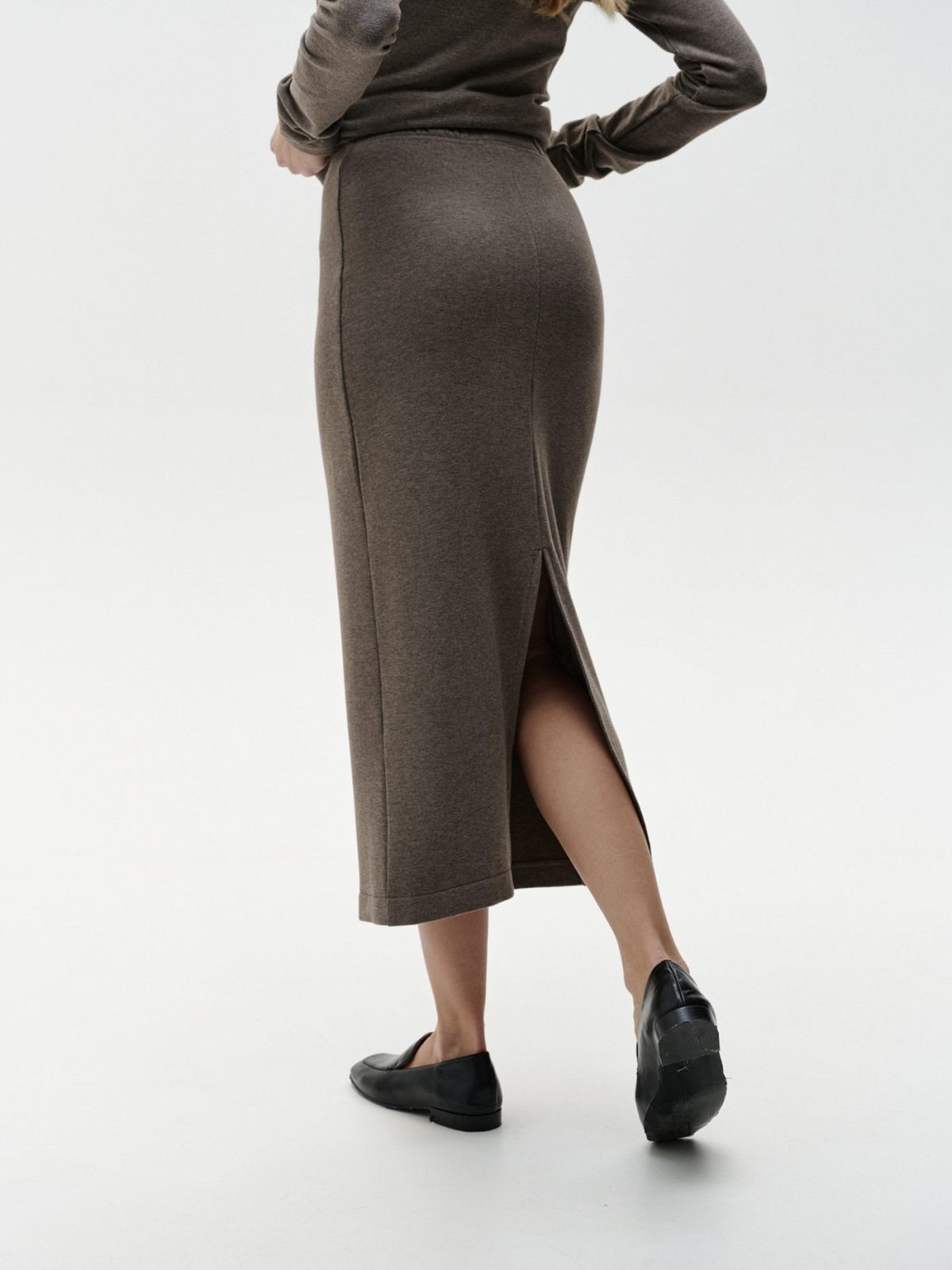 Удлиненная юбка-карандаш "Габриэль" из коллекции Office Core выполнена из мягкого материала с вискозой и хлопком. Материал очень приятный к телу. Сзади имеется лаконичный разрез, что добавляет комфорта при ходьбе. В комплекте к юбке в ассортименте представлен лонгслив-поло 1W2OC48E1-25CAP68. Улавливая тренды этой осени, мы создали удобный костюм в стиле Office Core, который можно сочетать с разной обувью и пиджаками oversize. В костюме "Габриэль" можно пойти в офис, сочетая его с туфлями, а после работы, сменив обувь на кеды, встретиться с подругой в кафе и при этом оставаться в тренде и комфорте.