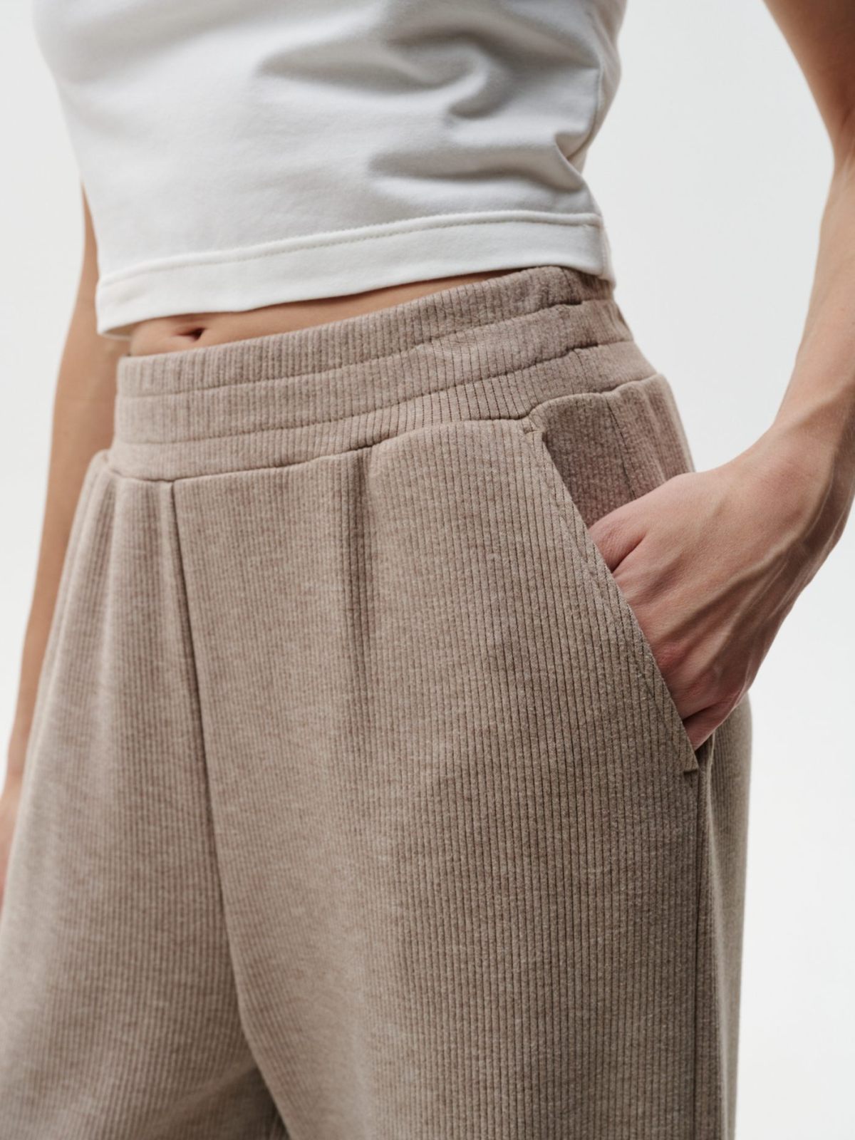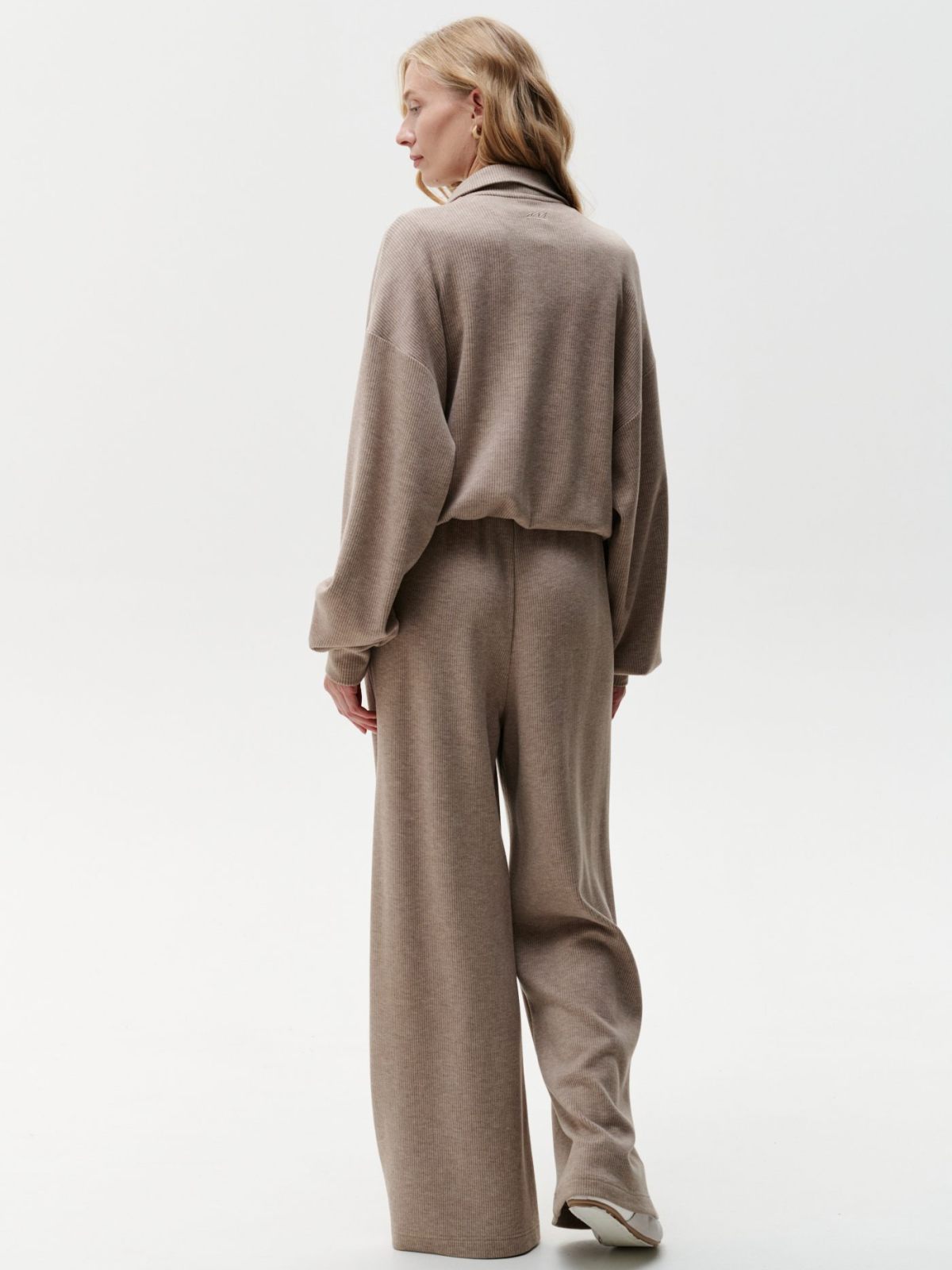 Брюки-палаццо "Герда" из коллекции Softwear выполнены из мягкого материала, в составе которого, преимущественно, вискоза, за счет чего материал имеет гладкую структуру. Брюки имеют два боковых кармана и внутренний шнурок для регулировки посадки. Незаменимый классический бежевый меланж в новом исполнении. К брюкам в ассортименте представлен джемпер 2W4SW314E1-25BGE/MLG67.