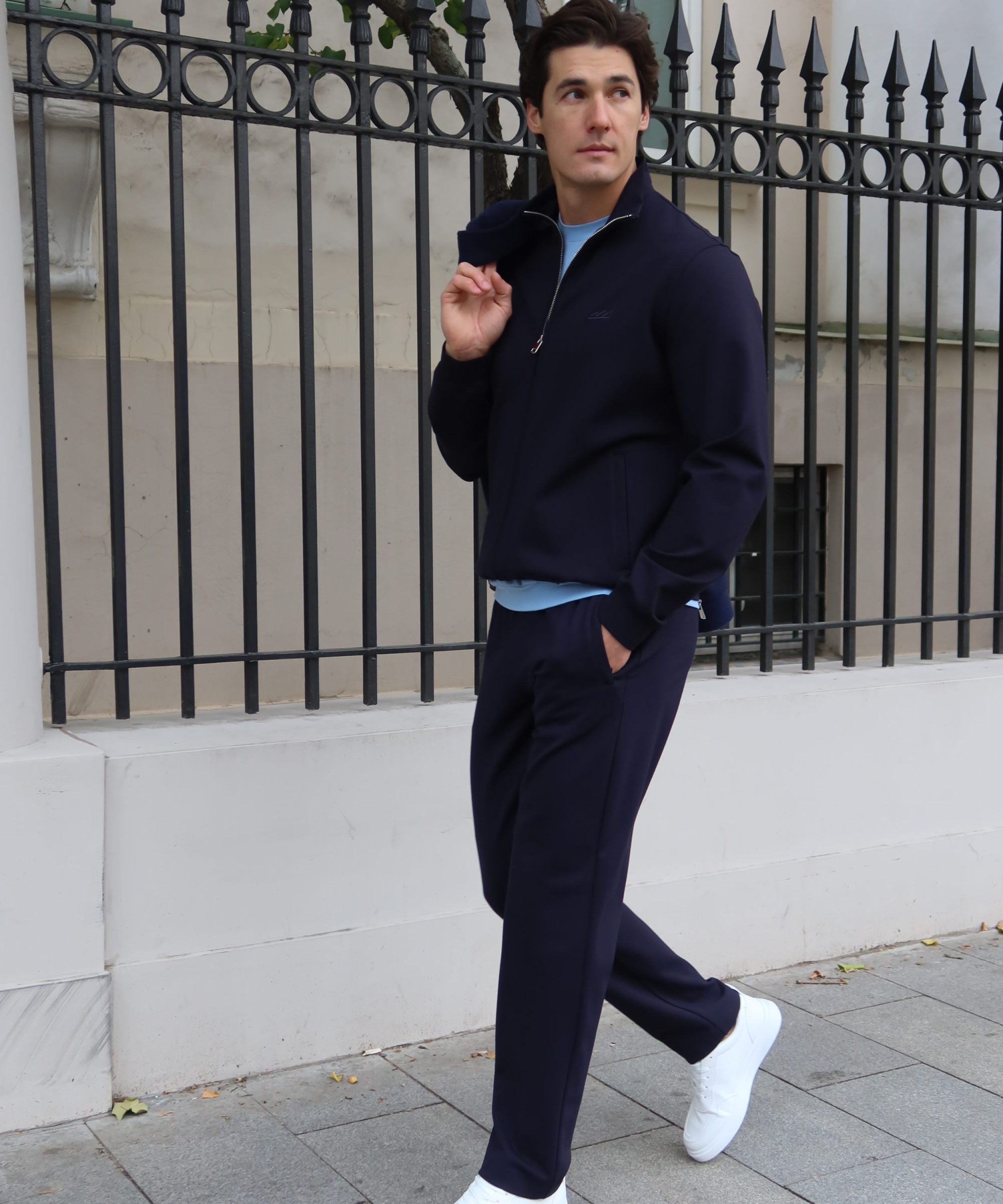 Джемпер "Ричард" на молнии с воротником-стойкой прямого кроя из коллекции Classic в строгом темно-синем цвете navi. Материал - джерси, приятный на ощупь, гладкий, прочный и структурный, отлично держит форму. За счет добавления нейлона в состав материал слегка тянется. Джемпер имеет два боковых кармана на молнии, лаконичную тональную вышивку на груди с логотипом бренда, двухзамковую брендированную молнию. К джемперу в ассортименте представлены брюки 3M5CL813E1-15DRK/BLU9. Лаконичный, комфортный костюм в стиле sport casual.