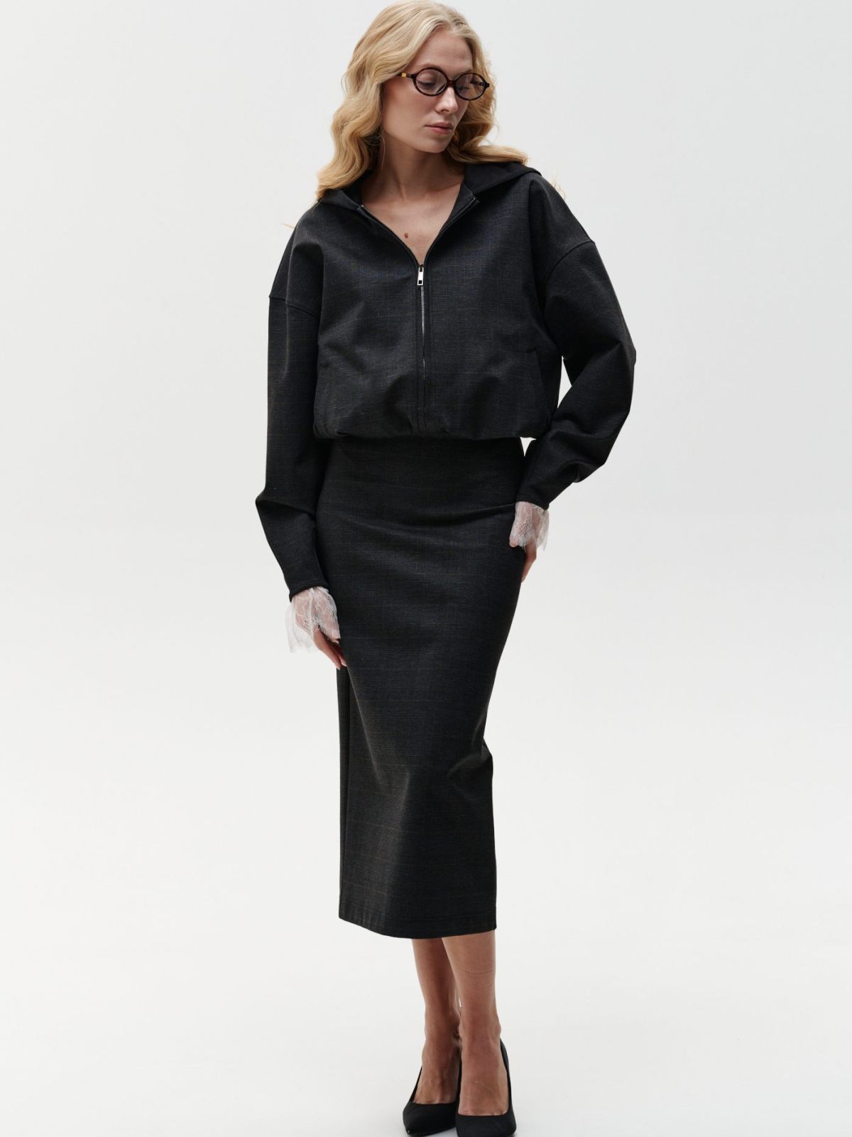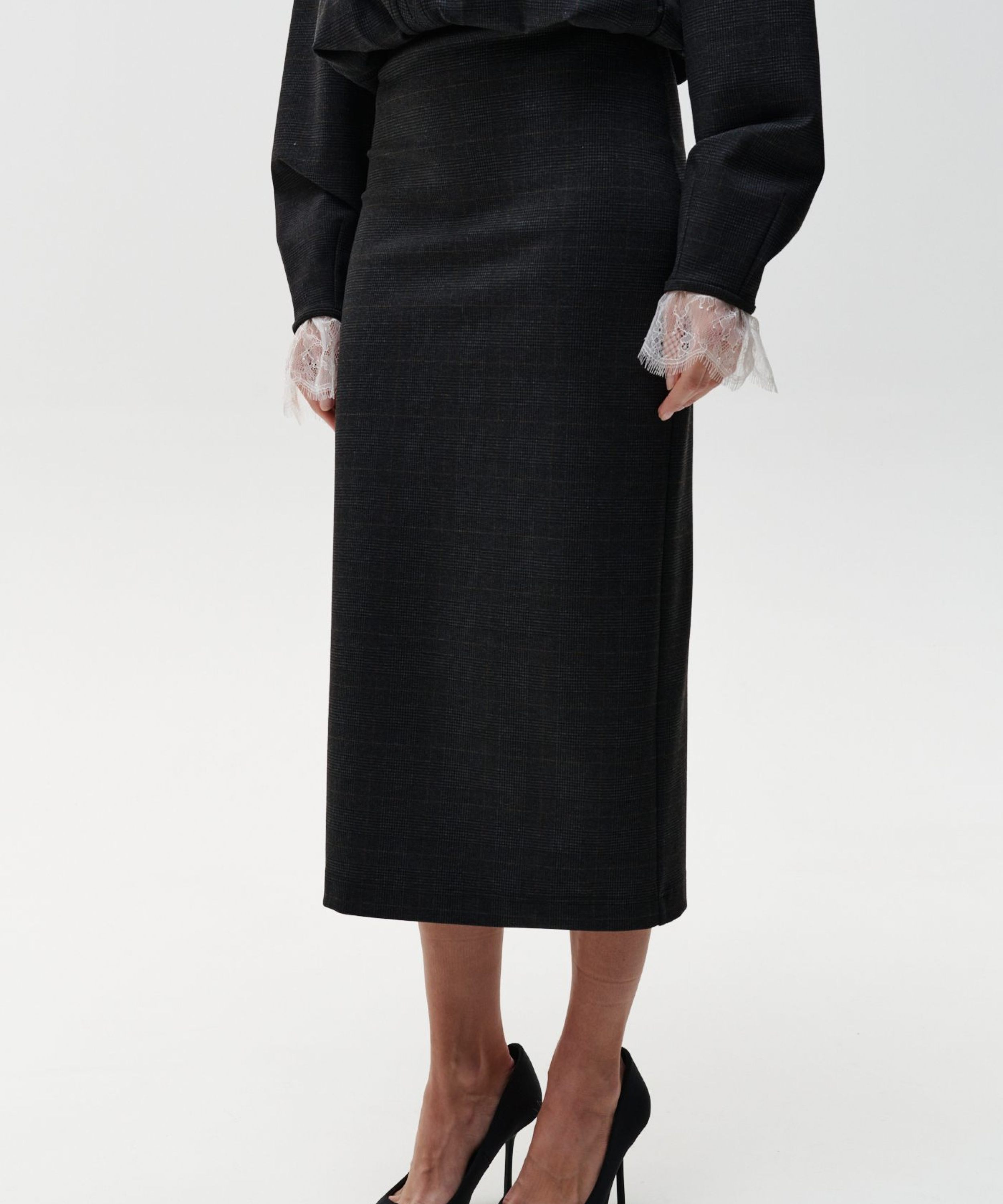 Удлиненная юбка-карандаш "Моника" из коллекции Office Core в трендовой приглушенной клетке. Материал - джерси, приятный на ощупь, гладкий, прочный и структурный, отлично держит форму. Пояс на резинке. Сзади имеется лаконичный разрез, что добавляет комфорта при ходьбе. Данная модель относится к костюму тройке "Моника", в который так же входят худи 2W3OC34E1-15MLT69 и жилетка 1W2OC21W-15MLT69. Костюм одинаково хорош как для офиса, так и для повседневной носки.