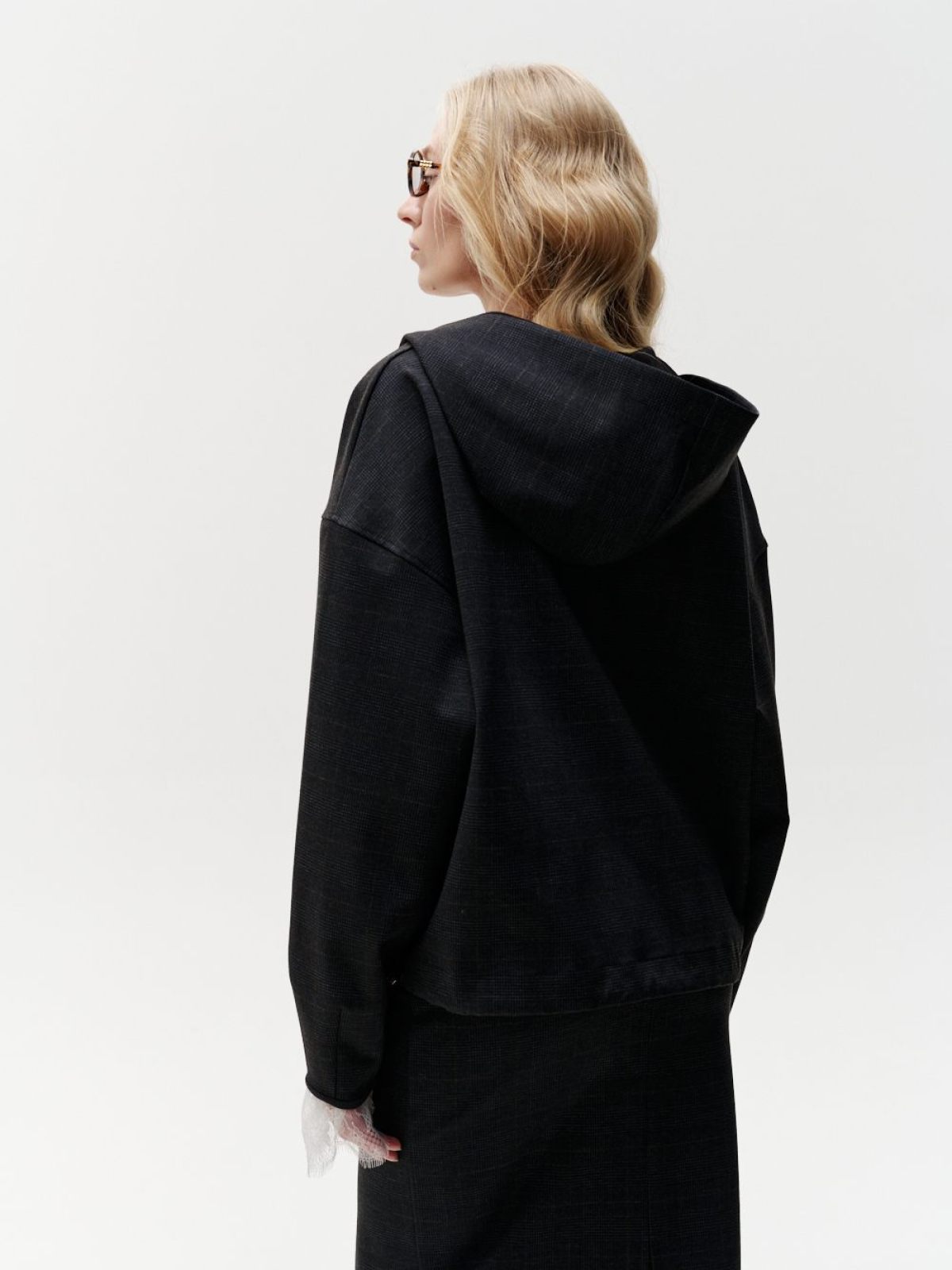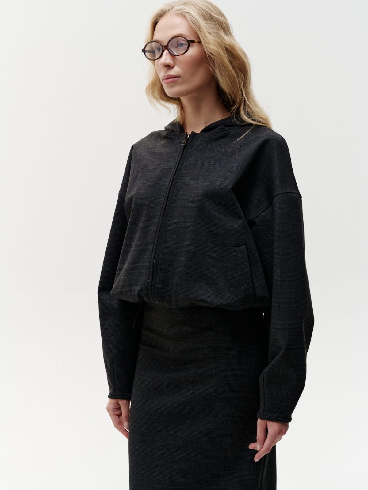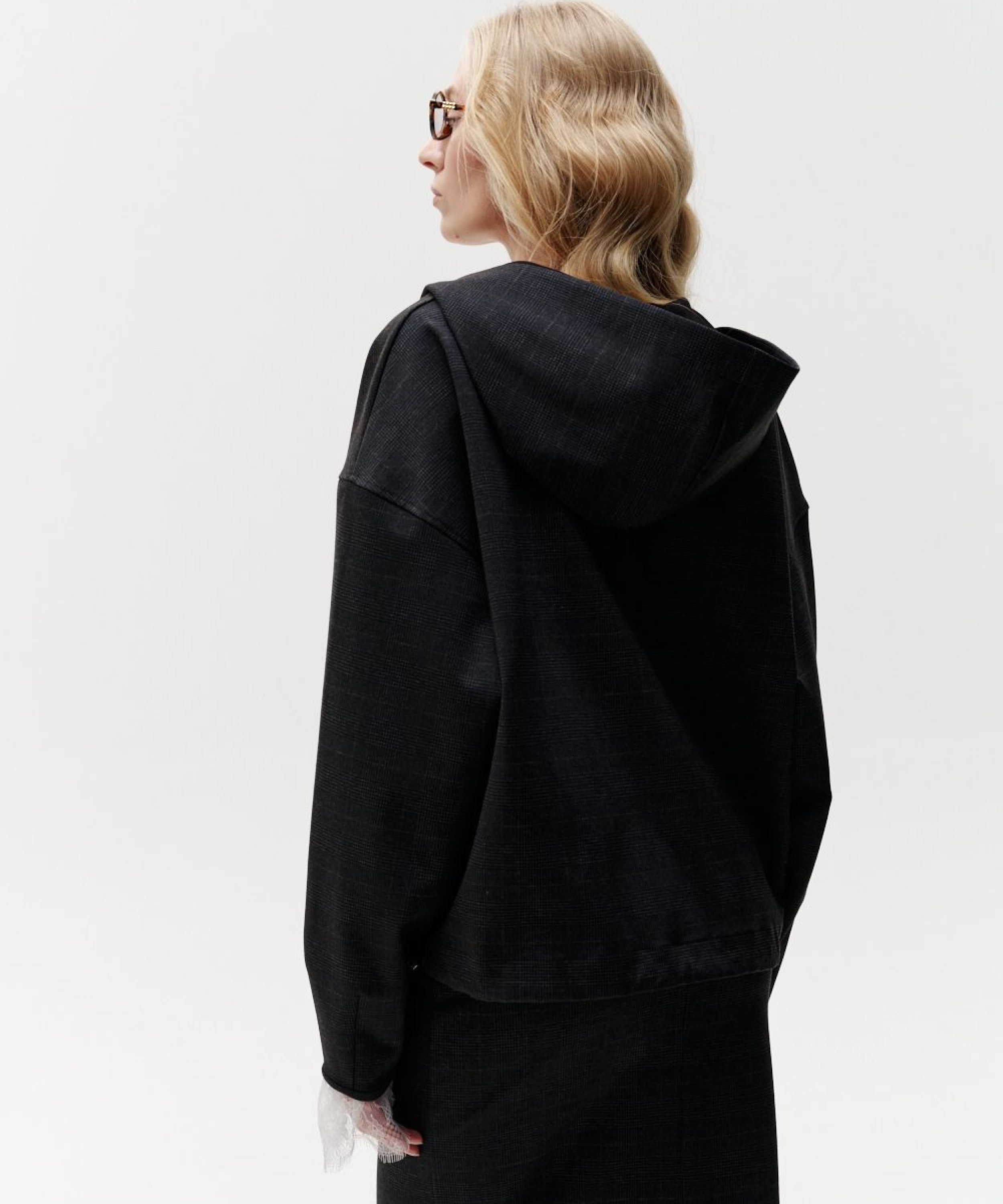 Худи "Моника" из коллекции Office Core в трендовой приглушенной клетке. Материал - джерси, приятный на ощупь, гладкий, прочный и структурный, отлично держит форму. Худи имеет два боковых кармана, корд-систему по низу для стилизации и регулировки, лаконичную тональную вышивку на капюшоне с логотипом бренда и двухзамковую брендированную молнию. Данная модель относится к костюму тройке "Моника", в который так же входят юбка-карандаш 1W3OC123W-15MLT69 и жилетка 1W2OC21W-15MLT69. Костюм одинакого хорош как для офиса, так и для повседневной носки.
