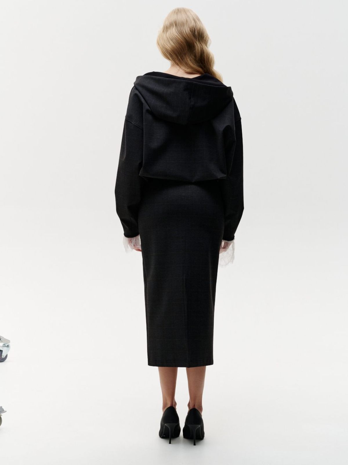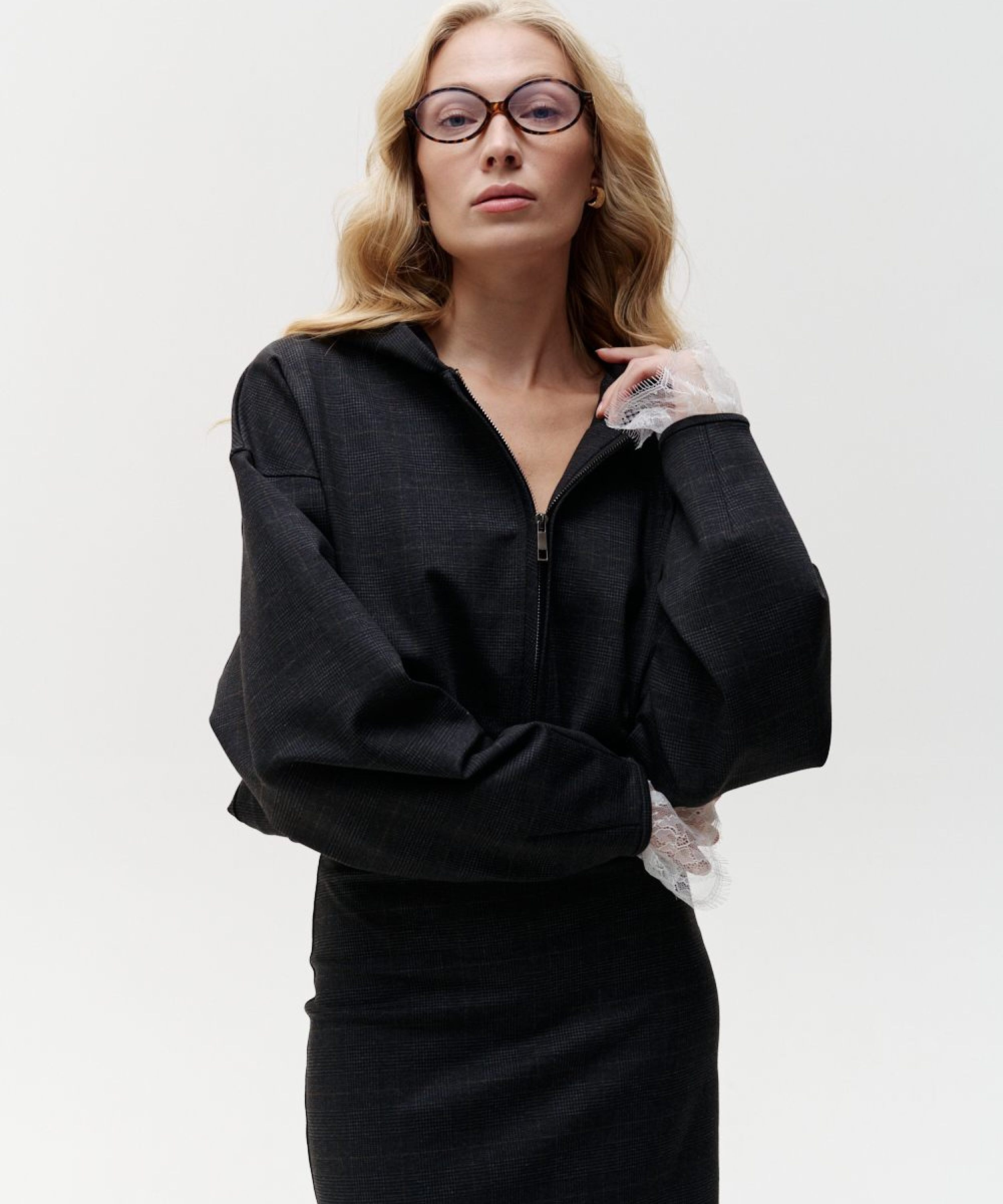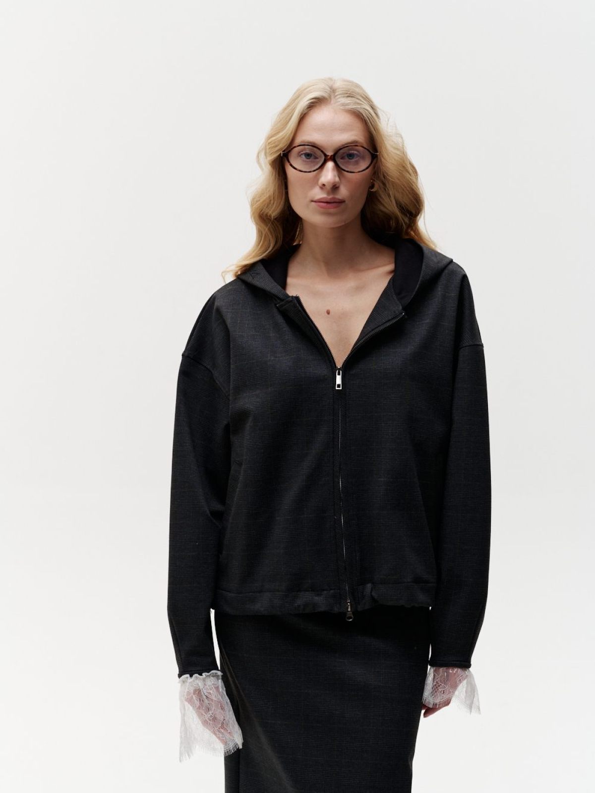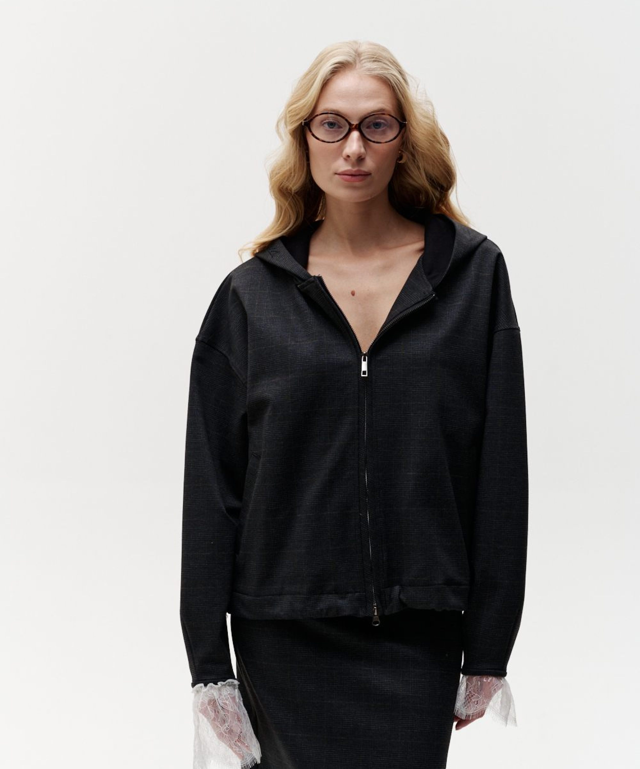 Худи "Моника" из коллекции Office Core в трендовой приглушенной клетке. Материал - джерси, приятный на ощупь, гладкий, прочный и структурный, отлично держит форму. Худи имеет два боковых кармана, корд-систему по низу для стилизации и регулировки, лаконичную тональную вышивку на капюшоне с логотипом бренда и двухзамковую брендированную молнию. Данная модель относится к костюму тройке "Моника", в который так же входят юбка-карандаш 1W3OC123W-15MLT69 и жилетка 1W2OC21W-15MLT69. Костюм одинакого хорош как для офиса, так и для повседневной носки.