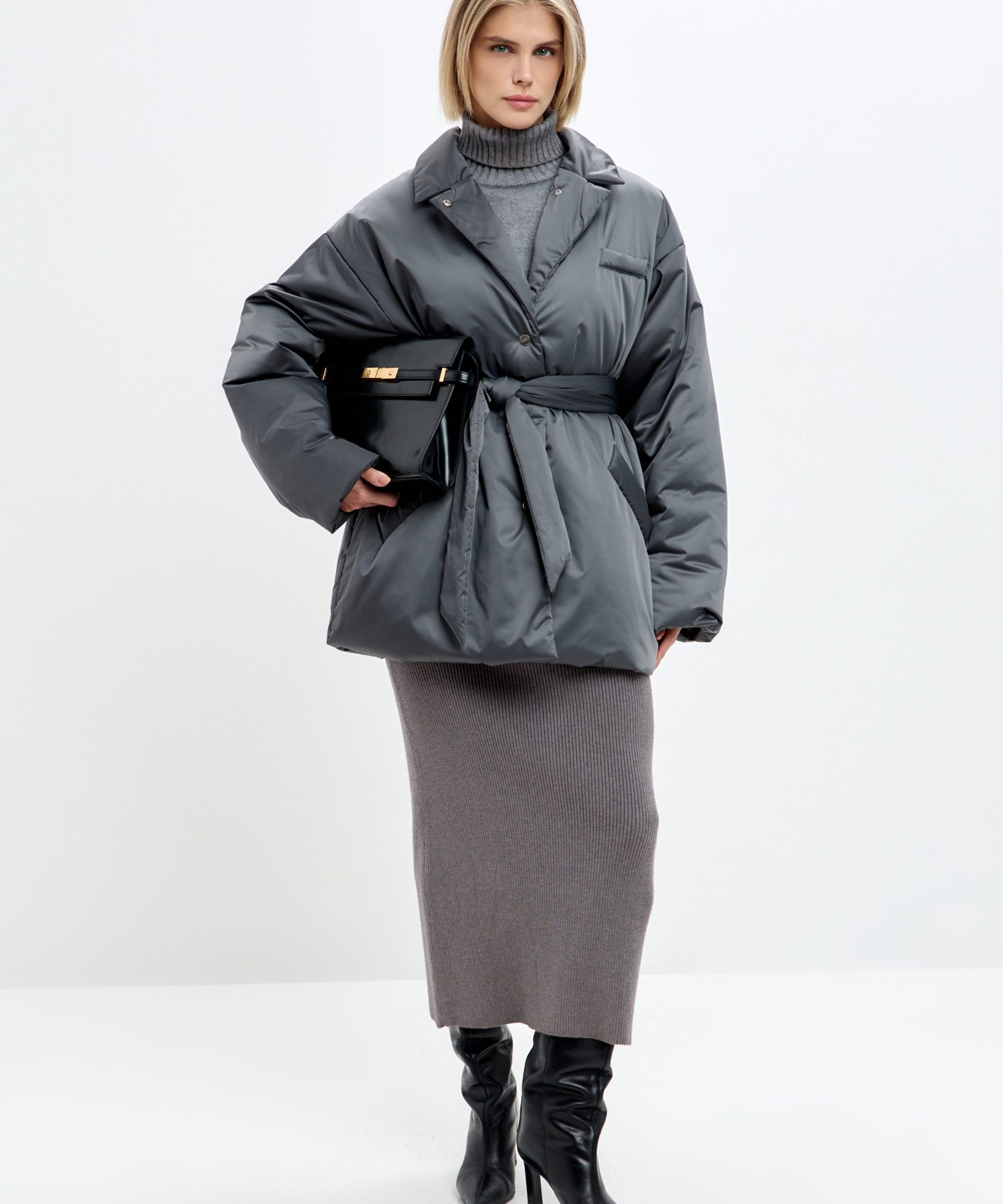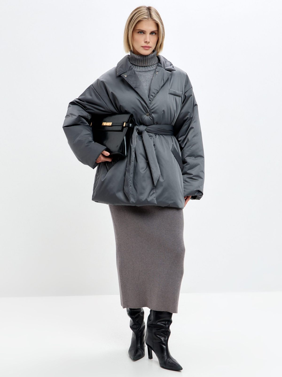 Утепленное пальто Oversize "Ксю" на кнопках и поясе. Пальто не имеет шлевок, что позволяет носить его без пояса, но в то же время на поясе есть кнопка, с помощью которой можно прикрепить его к пальто, чтобы не потерять. Пальто рассчитано на городскую зиму с температурой до -17гр. Утеплитель Тинсулейт очень легкий, воздушный и эластичный, за счет чего пальто кажется легким и мягким, как облачко, но при этом инновационные свойства данного утеплителя делают его очень теплым, его преимущество - это максимум тепла и минимум веса. Не вызывает аллергии, подходит людям с чувствительной кожей. Пальто имеет два больших кармана. В ассортименте к пальто представлены утепленные косынки 1W8PR143W. Комплекты выполнены в трех трендовых оттенках: ледяной голубой, ртуть и золото.