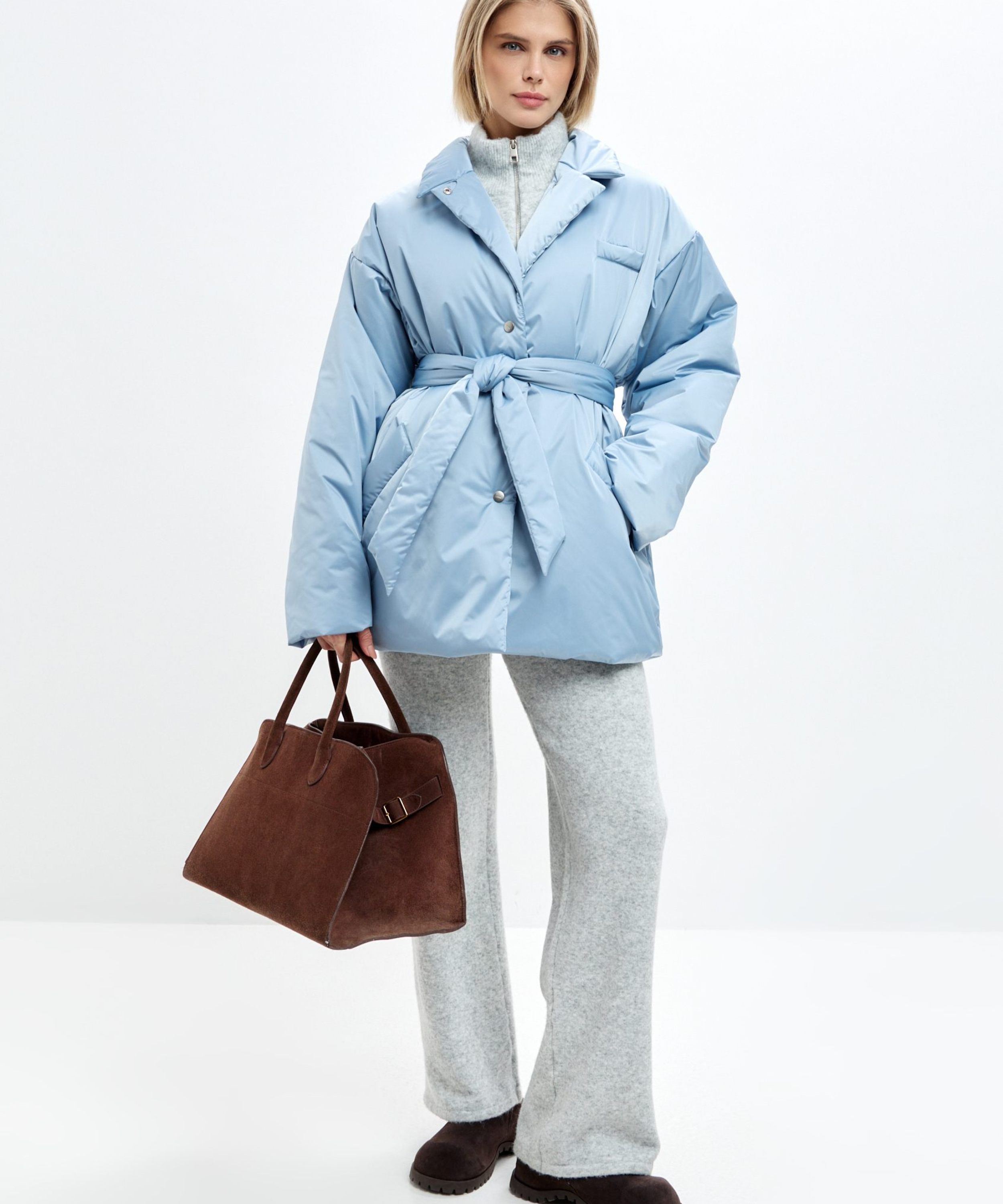 Утепленное пальто Oversize "Ксю" на кнопках и поясе. Пальто не имеет шлевок, что позволяет носить его без пояса, но в то же время на поясе есть кнопка, с помощью которой можно прикрепить его к пальто, чтобы не потерять. Пальто рассчитано на городскую зиму с температурой до -17гр. Утеплитель Тинсулейт очень легкий, воздушный и эластичный, за счет чего пальто кажется легким и мягким, как облачко, но при этом инновационные свойства данного утеплителя делают его очень теплым, его преимущество - это максимум тепла и минимум веса. Не вызывает аллергии, подходит людям с чувствительной кожей. Пальто имеет два больших кармана. В ассортименте к пальто представлены утепленные косынки 1W8PR143W. Комплекты выполнены в трех трендовых оттенках: ледяной голубой, ртуть и золото.