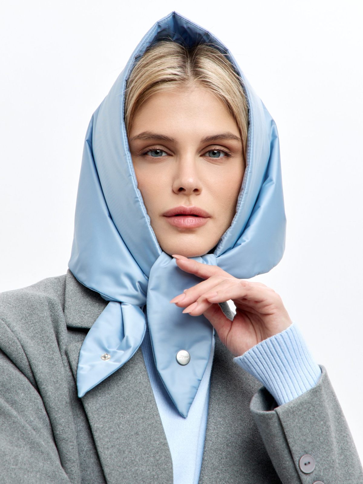 Утепленная косынка на кнопке "Ксю". Косынку можно просто завязать спереди на игривый узел, а можно обернуть вокруг шеи и застегнуть на кнопку, чтобы обеспечить защиту от ветра. Утеплитель Сиберия Микро обладает хорошей теплоизоляцией, воздухопроницаемостью, легкостью и тонкостью, поэтому несмотря на то, что косынка утепленная, она тонкая и легкая. Не вызывает аллергии, подходит людям с чувствительной кожей. В ассортименте к косынке представлены пальто 1W8PR110W. Комплекты выполнены в трех трендовых оттенках: ледяной голубой, ртуть и золото.