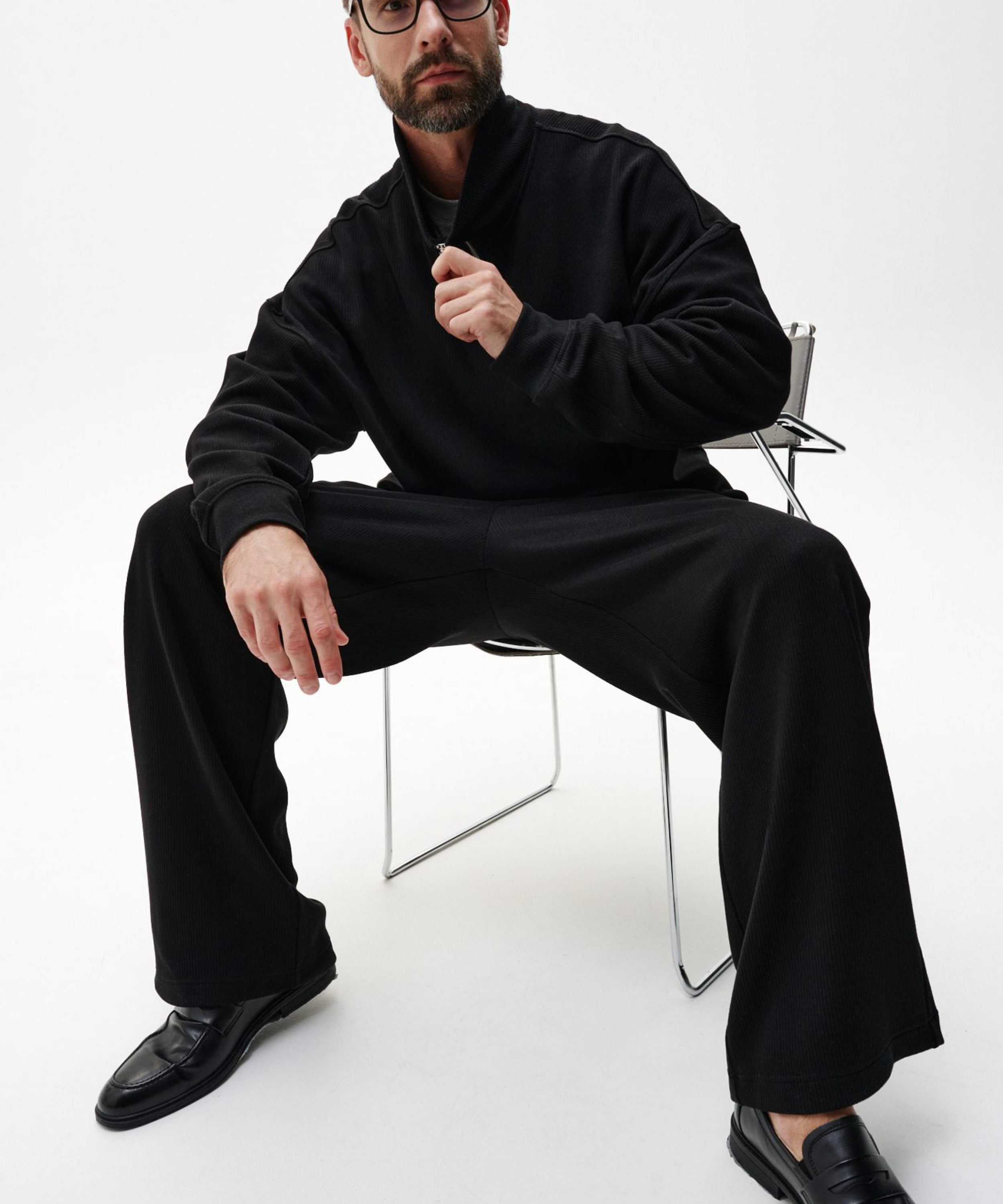 Широкие прямые брюки "Эхо" из коллекции Softwear выполнены из материала, в составе которого, преимущественно, вискоза и нейлон, за счет чего материал гладкий и приятный на ощупь, слегка тянется, но при этом выглядит фактурно. Комфортная резинка на поясе, расслабленный силуэт, классический цвет полностью отражают эстетику коллекции Softwear. Гульфик на брюках декоративный. Брюки имеют два боковых кармана на молнии, внутренний шнурок для регулировки посадки. К брюкам в ассортименте представлен джемпер "Миша" 2M4SW32E1. Невероятно комфортный, мягкий и стильный костюм на каждый день. Важно: материал имеет низкую пиллингуемость, но частое соприкосновение с аксессуарами может привести к образованию пилли.