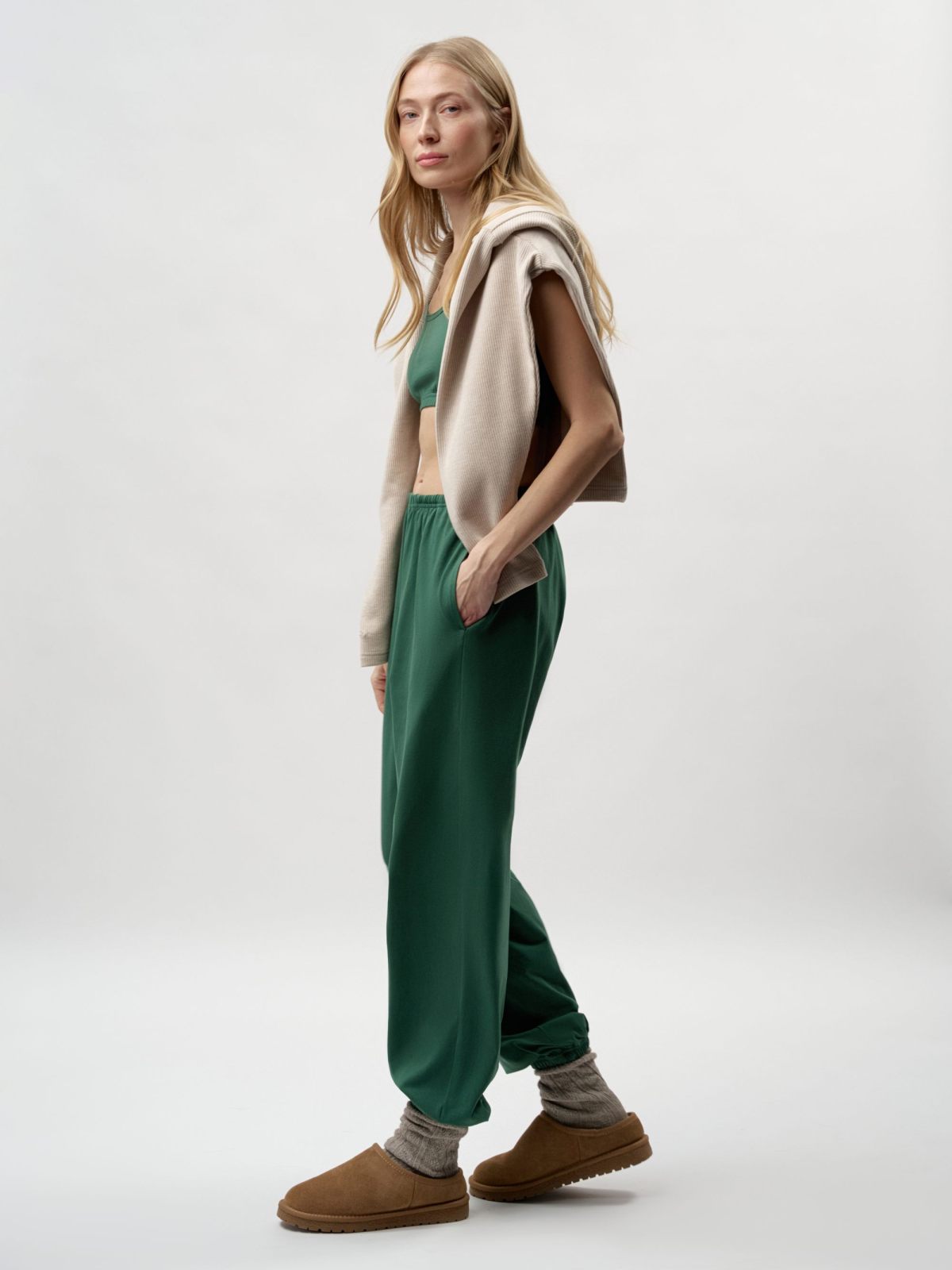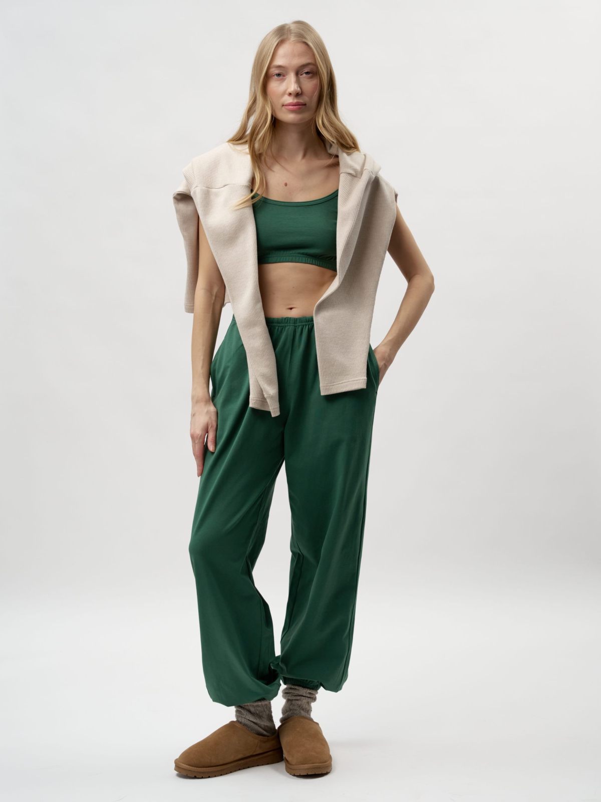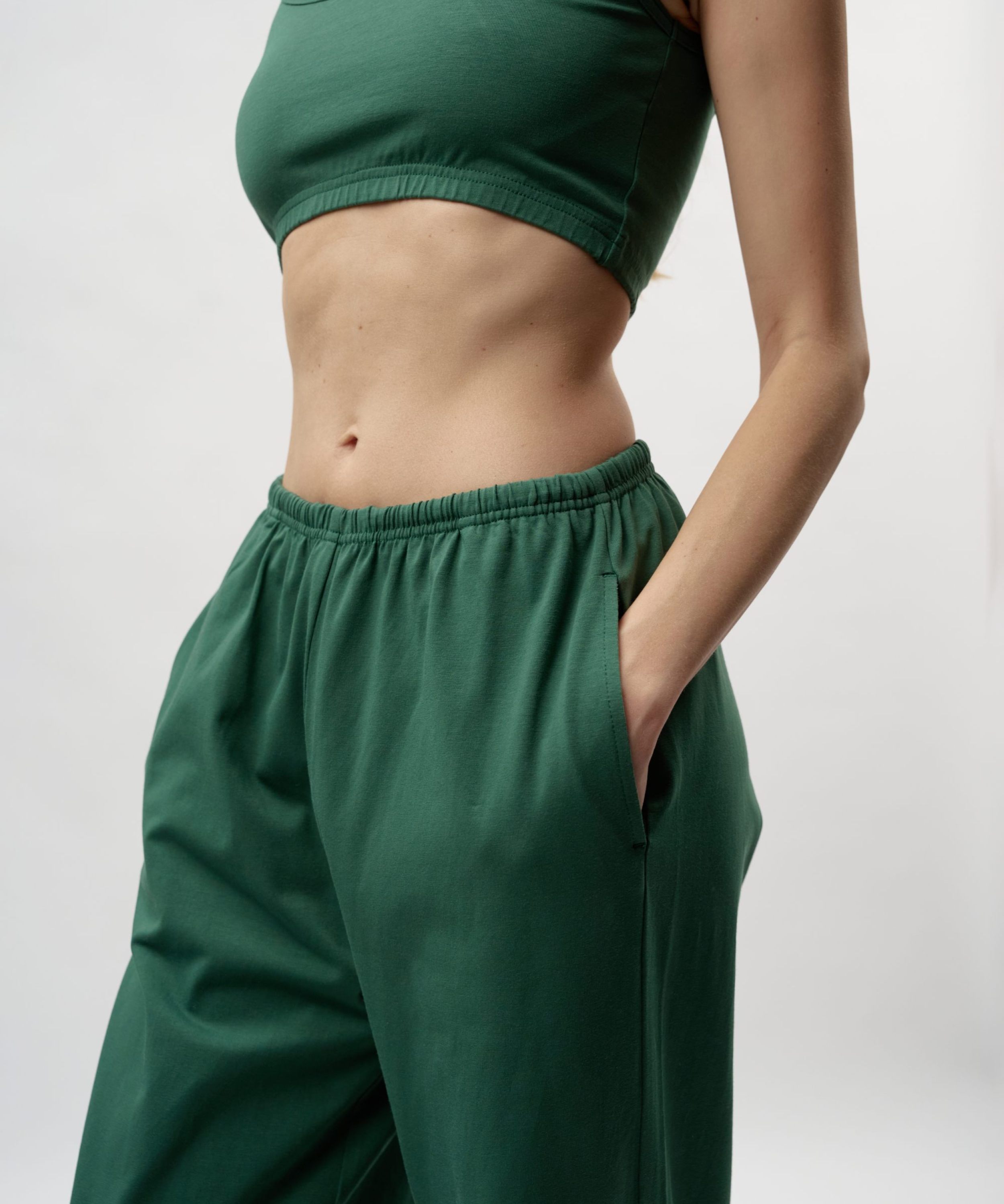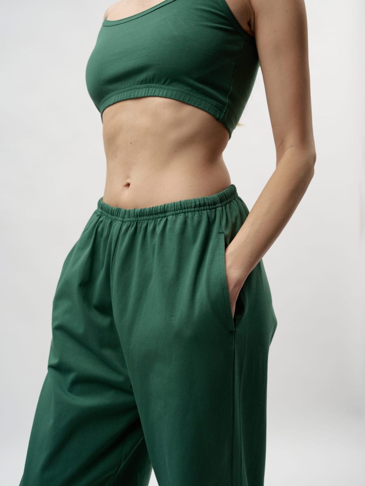 Широкие брюки-джоггеры "Лиза" из коллекции Classic выполнены из материала с большим содержанием хлопка. За счет добавления тонких нитей эластана изделие слегка тянется, что обеспечивает отличную посадку. Пояс на тонкой эластичной резинке. Брюки имеют два боковых кармана. Легкие комфортные стильные брюки - незаменимая вещь вашего гардероба, которую легко сочетать с другими вещами. К брюкам в ассортименте представлены топы 3W5CL71W-10DRK/GRN98 и 3W5CL71W-10GRY/MLG98.