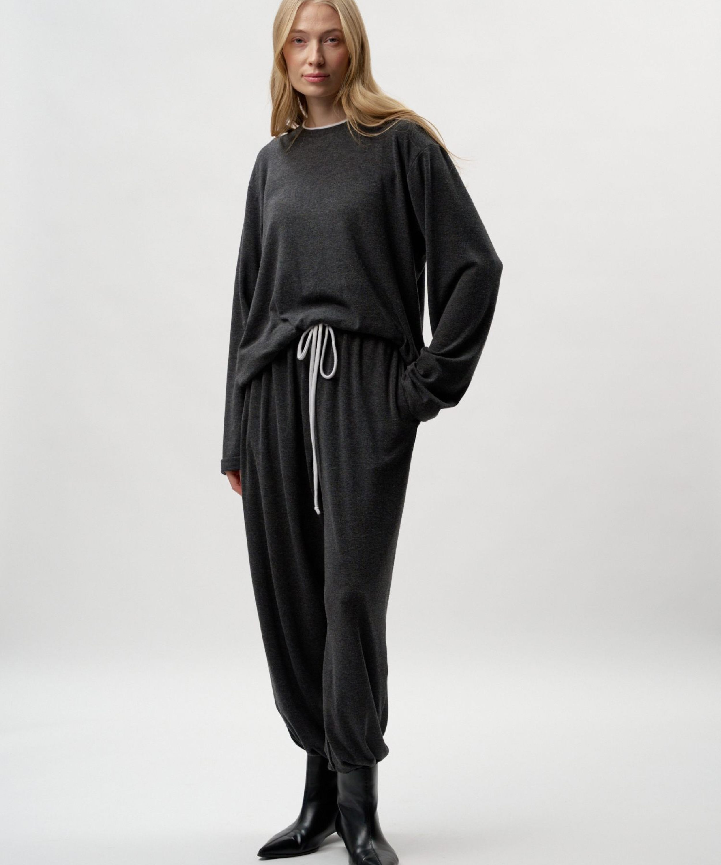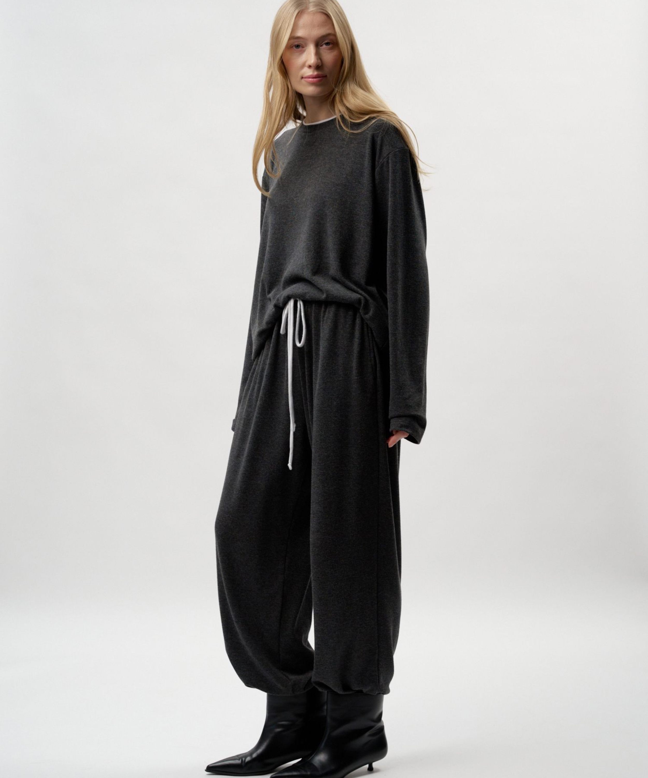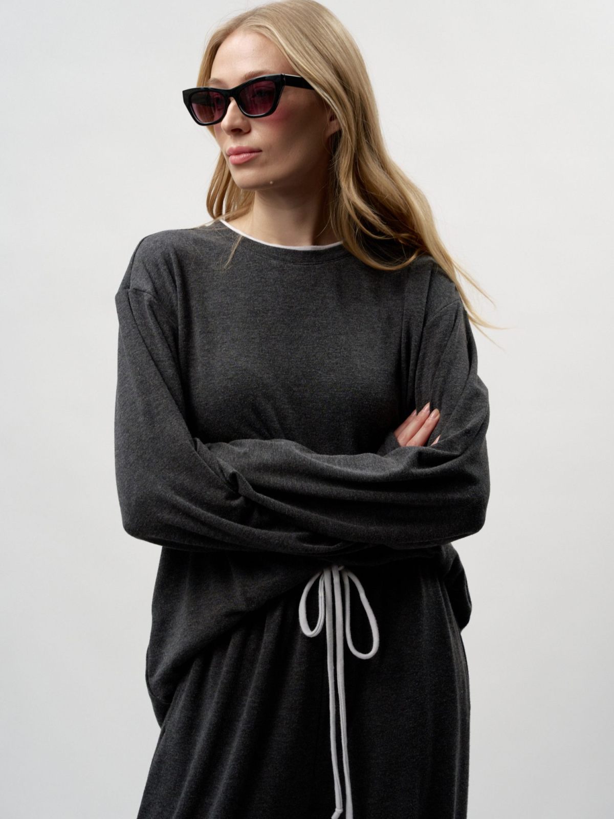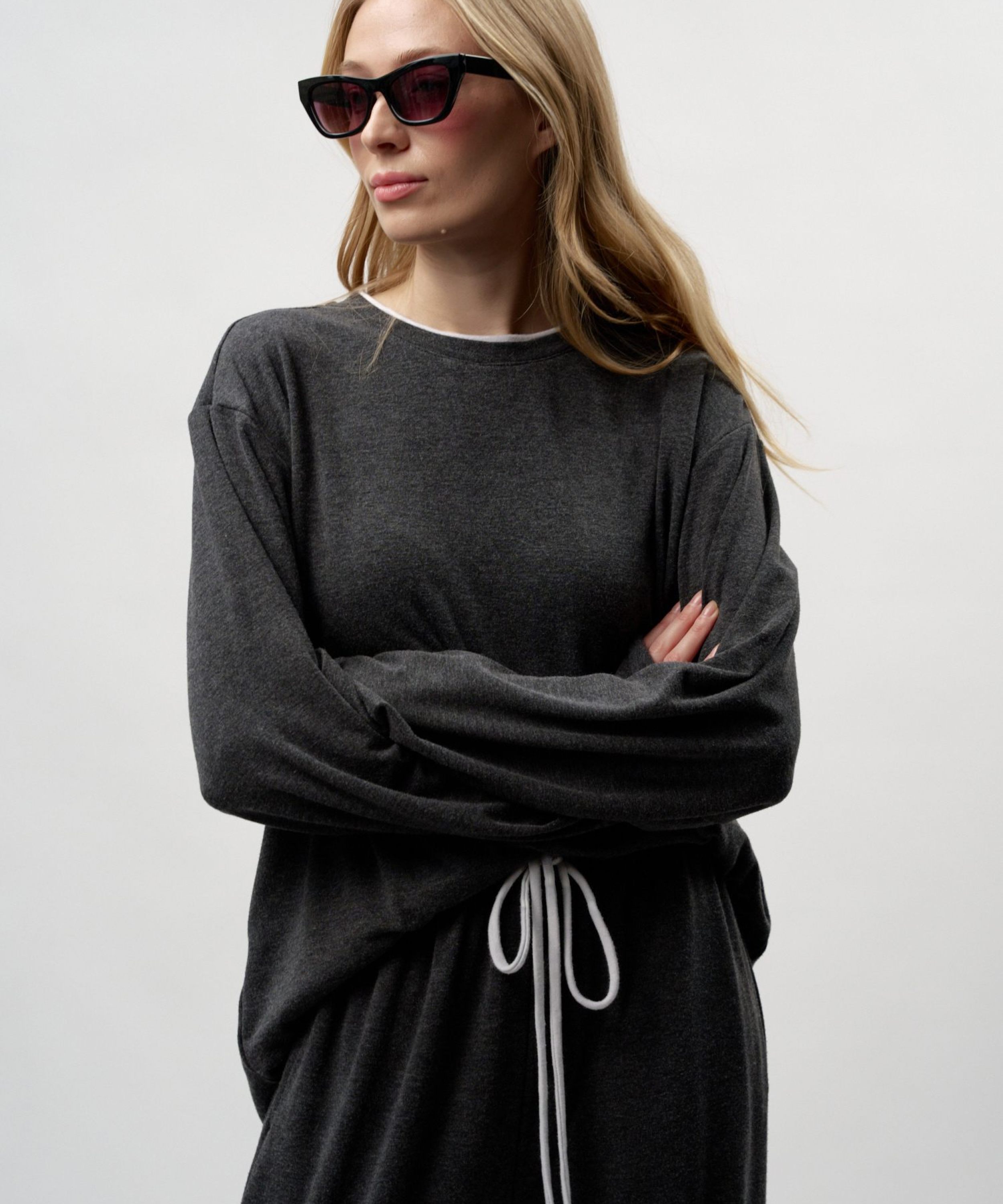Лонгслив "Лиза" свободного кроя из коллекции Softwear выполнен из материала с добавлением кашемира. Такой состав делает изделие легким, мягким и теплым. Его комфортно носить как в холодное время года, так и во время смены сезонов. Спущенное плечо, контрастный двойной воротник из основного материала, лаконичная тональная вышивка с логотипом бренда на плече. Базовая, но стильная и незаменимая вещь для создания повседневных образов. В комплекте к лонгсливу в ассортименте представлены брюки "Лиза" SBW4SW83W-37DRK/MLG98 и SBW4SW83W-37ECR98. Можно выбрать однотонный костюм, а можно комбинировать разные цвета в одном комплекте. Важно: материал имеет низкую пиллингуемость, но частое соприкосновение с аксессуарами может привести к образованию пилли. Рекомендуем воспользоваться специальной щеткой или машинкой для их удаления.
